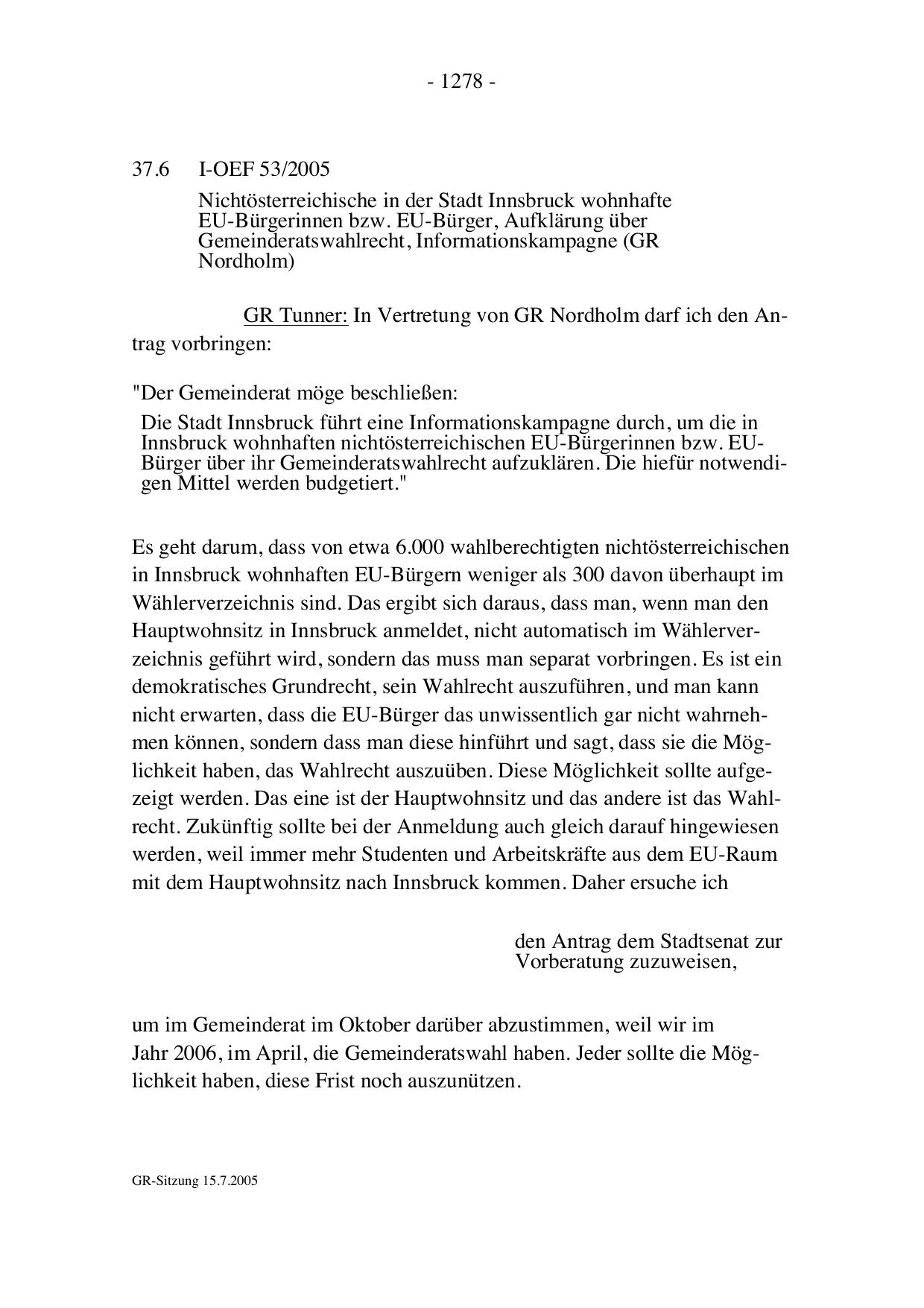 GR Tunner: In Vertretung von GR Nordholm darf ich den Antrag vorbringen: