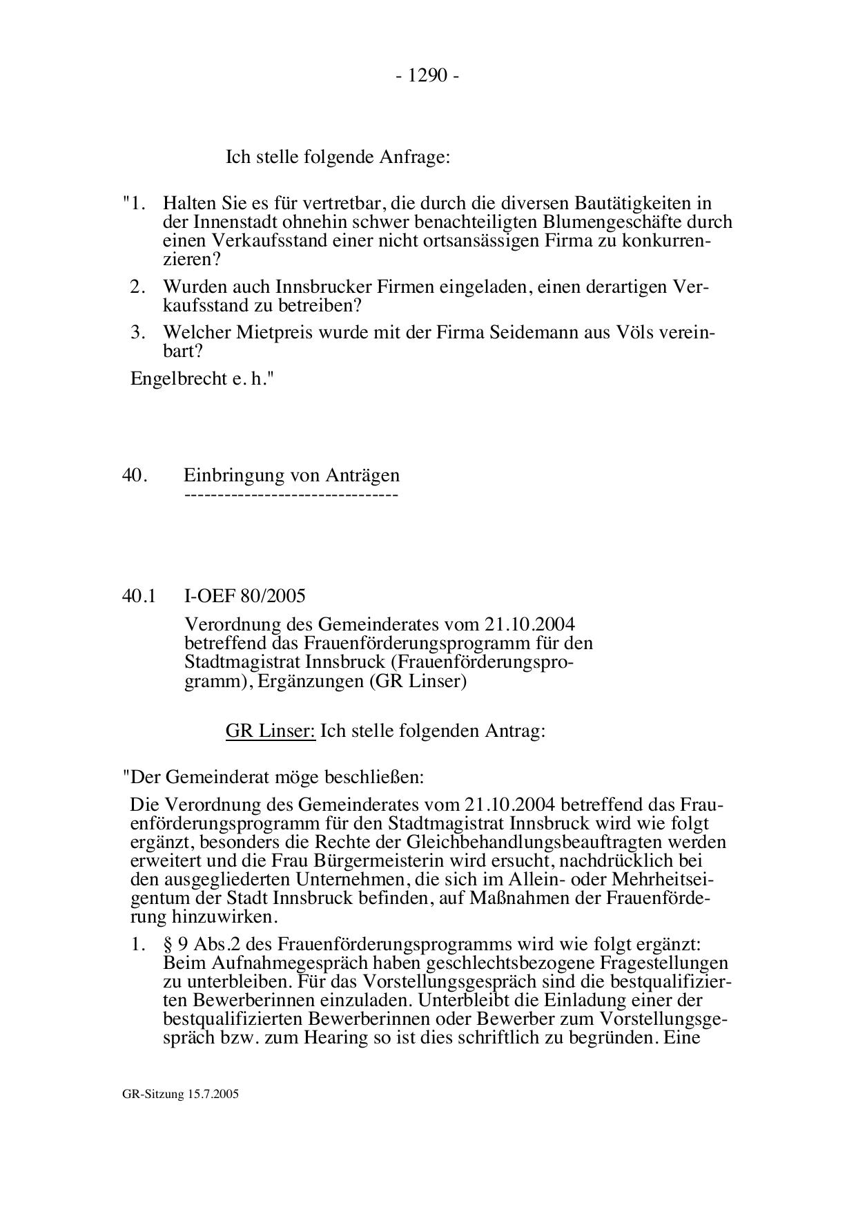 Stadtmagistrat Innsbruck (Frauenförderungsprogramm), Ergänzungen (GR Linser)