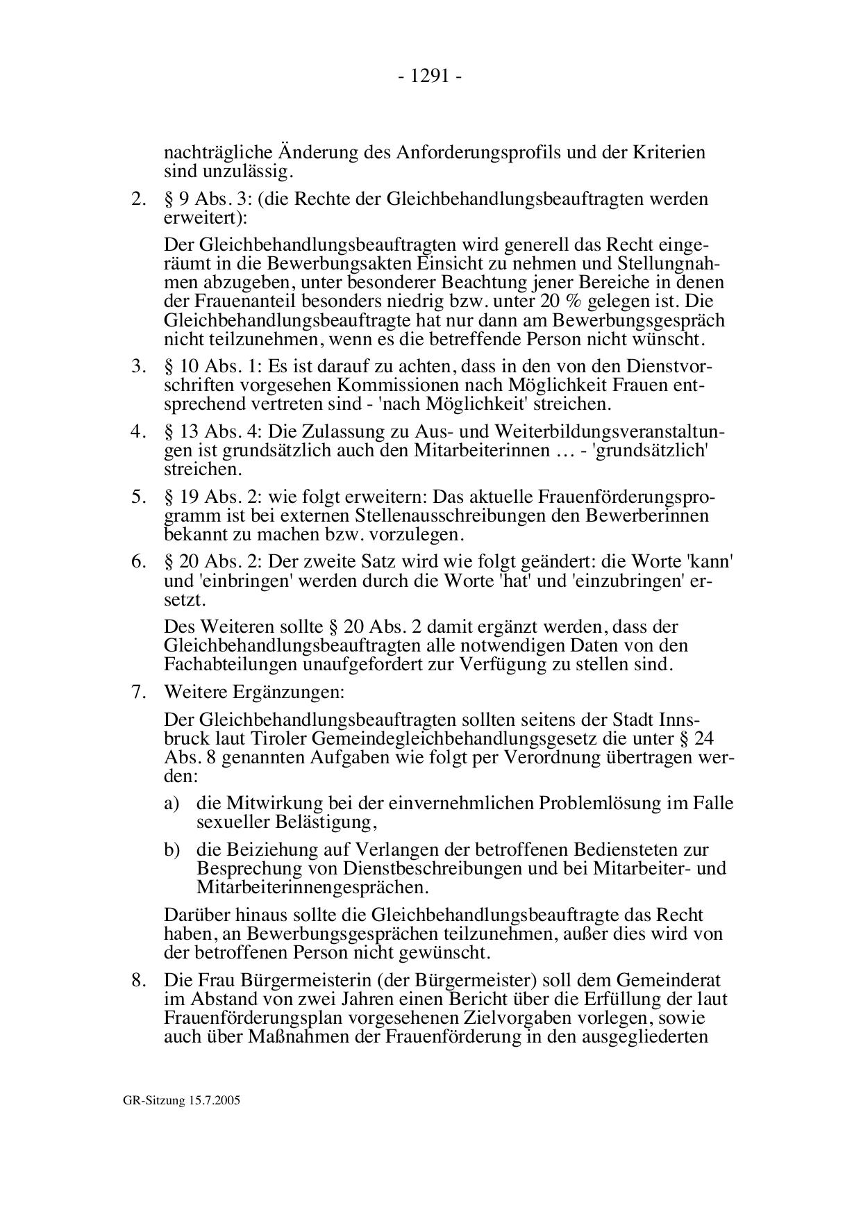 Der Gleichbehandlungsbeauftragten sollten seitens der Stadt Innsbruck laut Tiroler Gemeindegleichbehandlungsgesetz die unter § 24