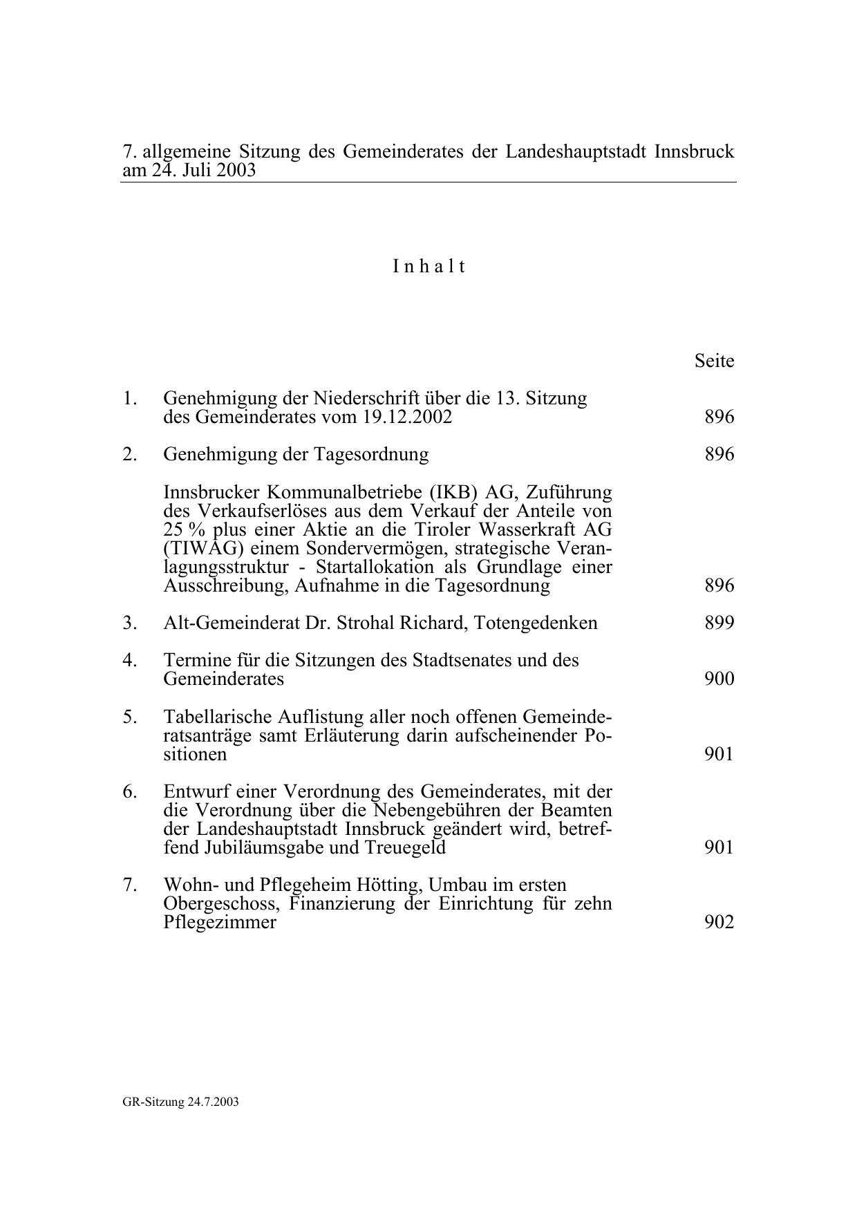 7. allgemeine Sitzung des Gemeinderates der Landeshauptstadt Innsbruck