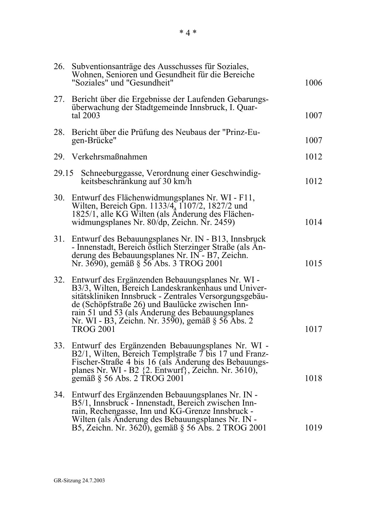 - Innenstadt, Bereich östlich Sterzinger Straße (als Änderung des Bebauungsplanes Nr. IN - B7, Zeichn.