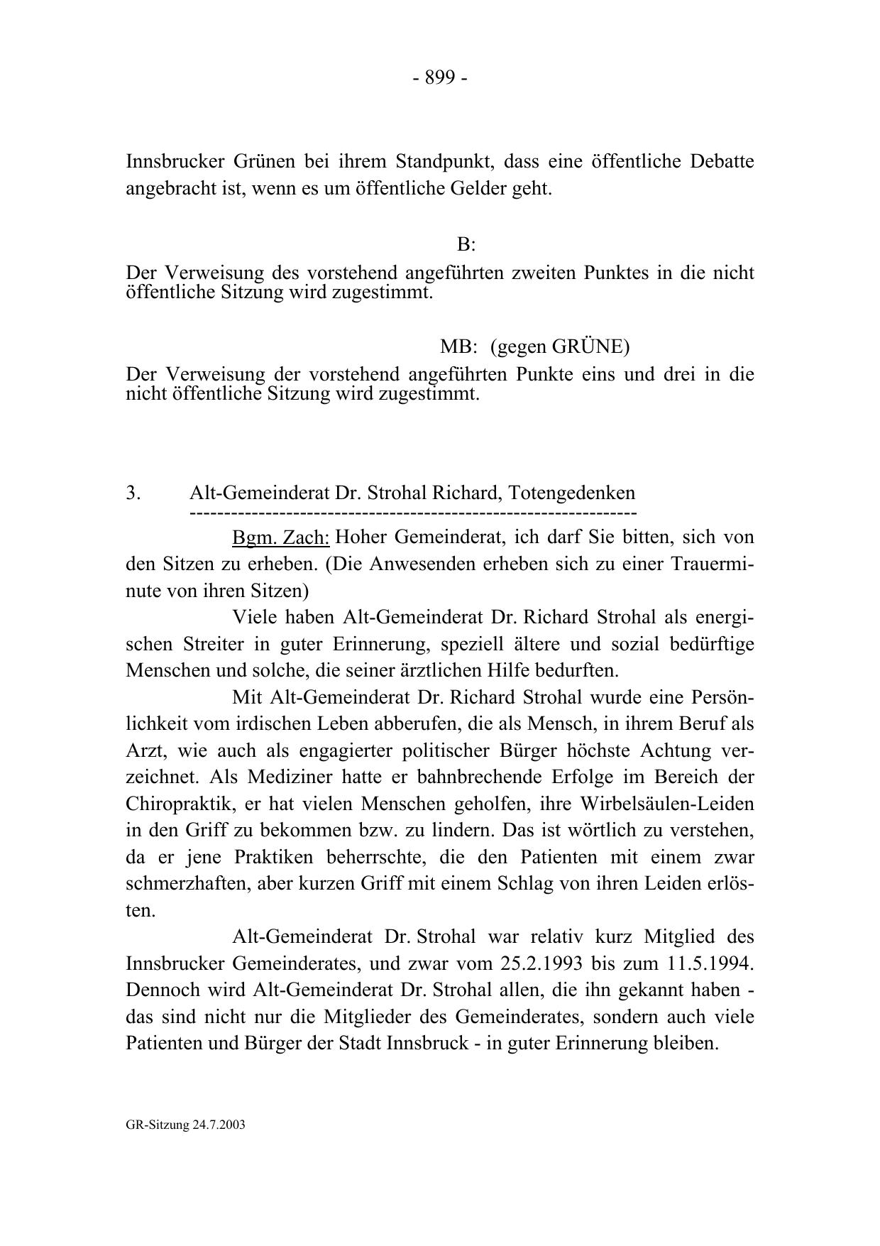----------------------------------------------------------------Bgm. Zach: Hoher Gemeinderat, ich darf Sie bitten, sich von