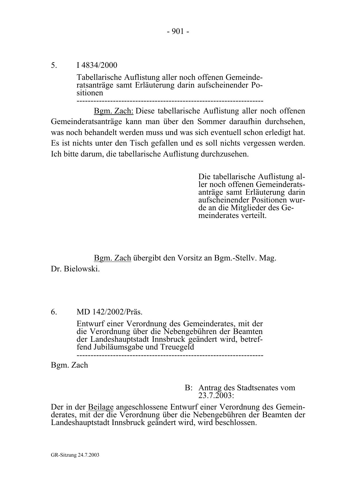 ------------------------------------------------------------------Bgm. Zach: Diese tabellarische Auflistung aller noch offenen