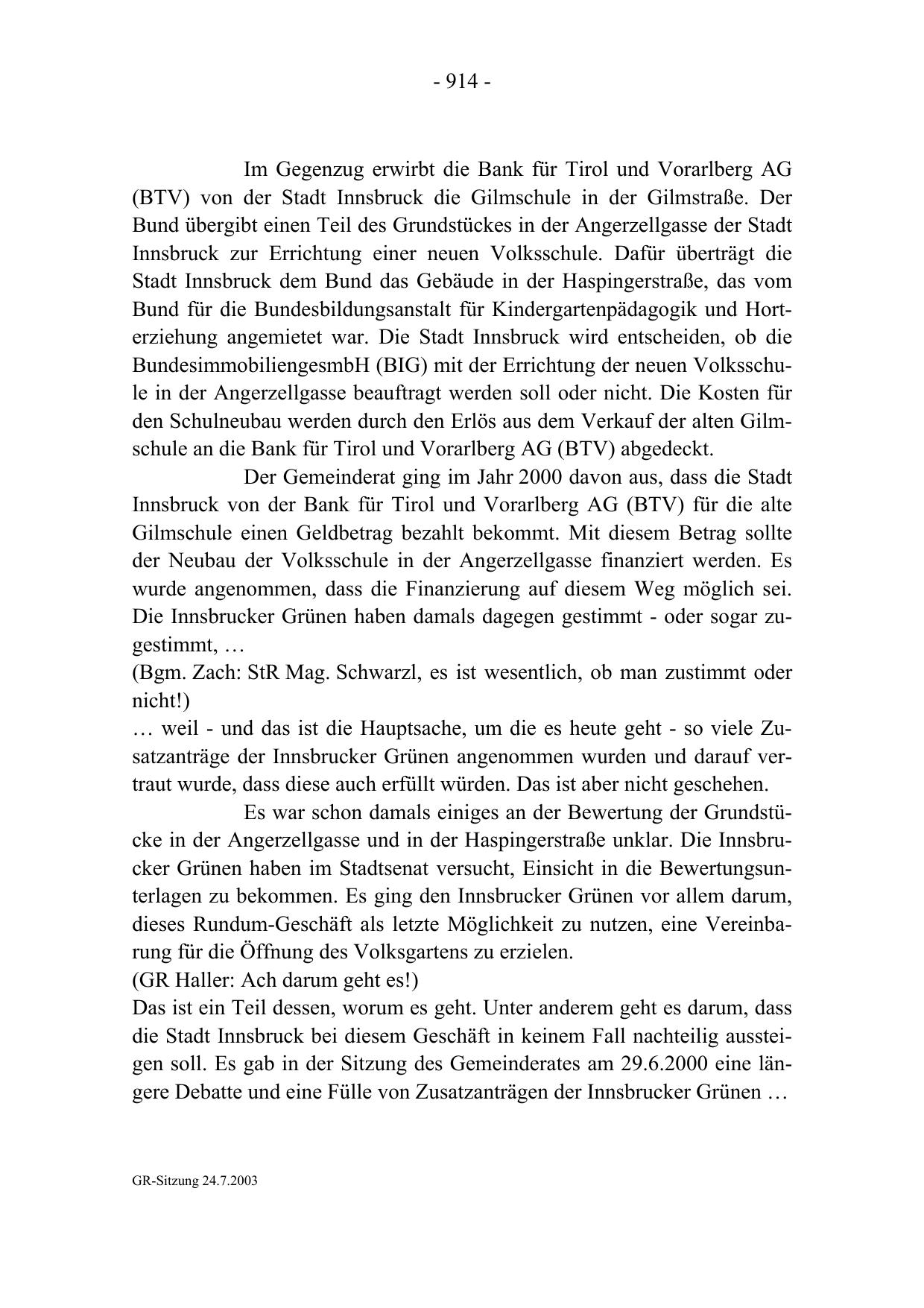 die Stadt Innsbruck bei diesem Geschäft in keinem Fall nachteilig aussteigen soll. Es gab in der Sitzung des Gemeinderates am 29.6.2000 eine längere Debatte und eine Fülle von Zusatzanträgen der Innsbrucker Grünen …