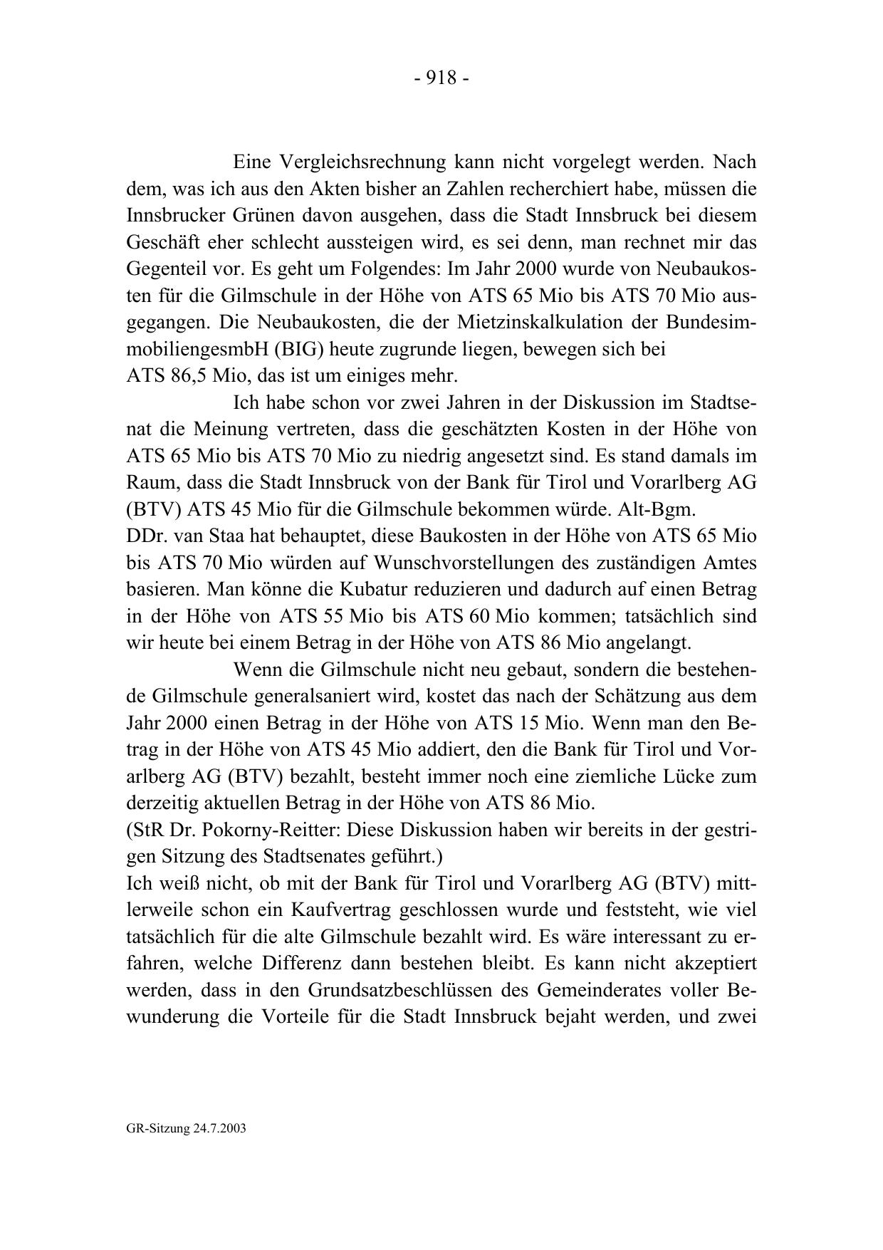 werden, dass in den Grundsatzbeschlüssen des Gemeinderates voller Bewunderung die Vorteile für die Stadt Innsbruck bejaht werden, und zwei