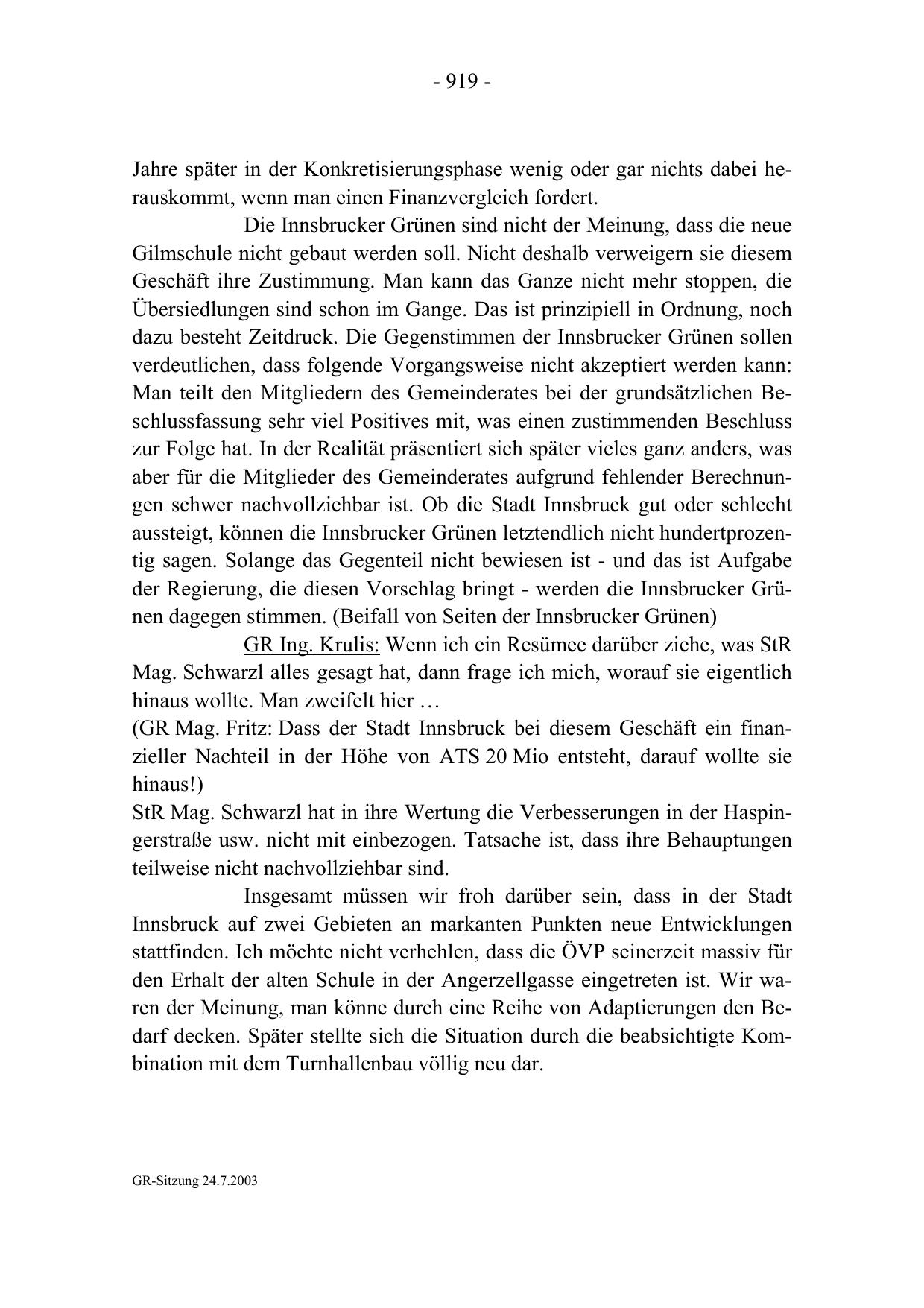 GR-Sitzung 24.7.2003