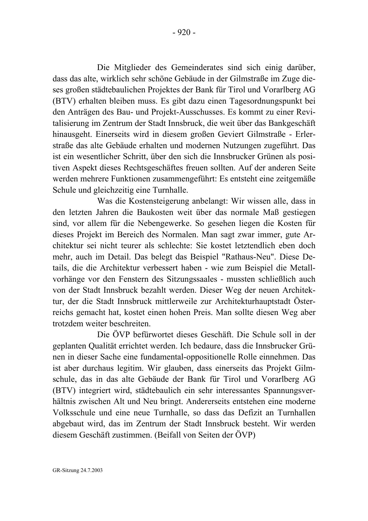 ist aber durchaus legitim. Wir glauben, dass einerseits das Projekt Gilmschule, das in das alte Gebäude der Bank für Tirol und Vorarlberg AG