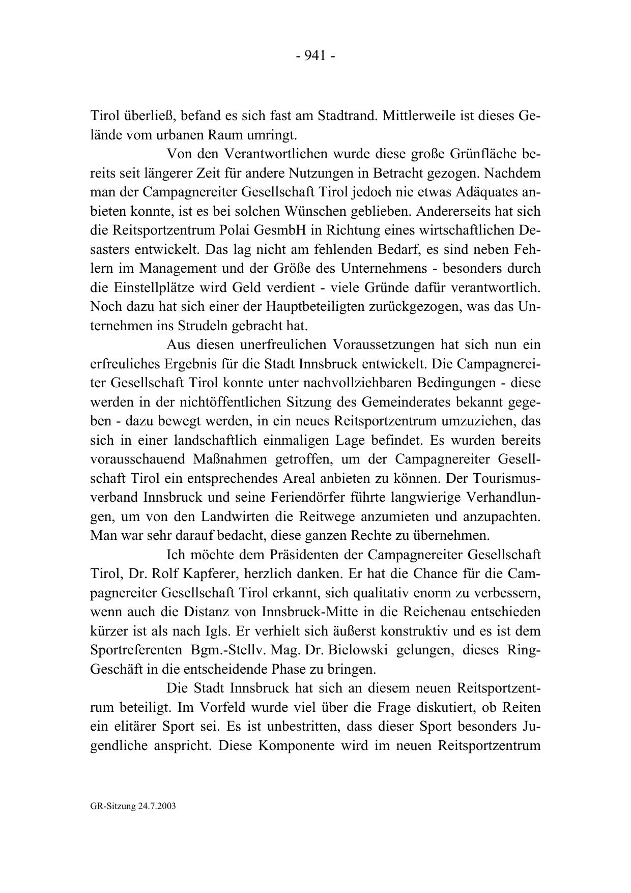 erfreuliches Ergebnis für die Stadt Innsbruck entwickelt. Die Campagnereiter Gesellschaft Tirol konnte unter nachvollziehbaren Bedingungen - diese