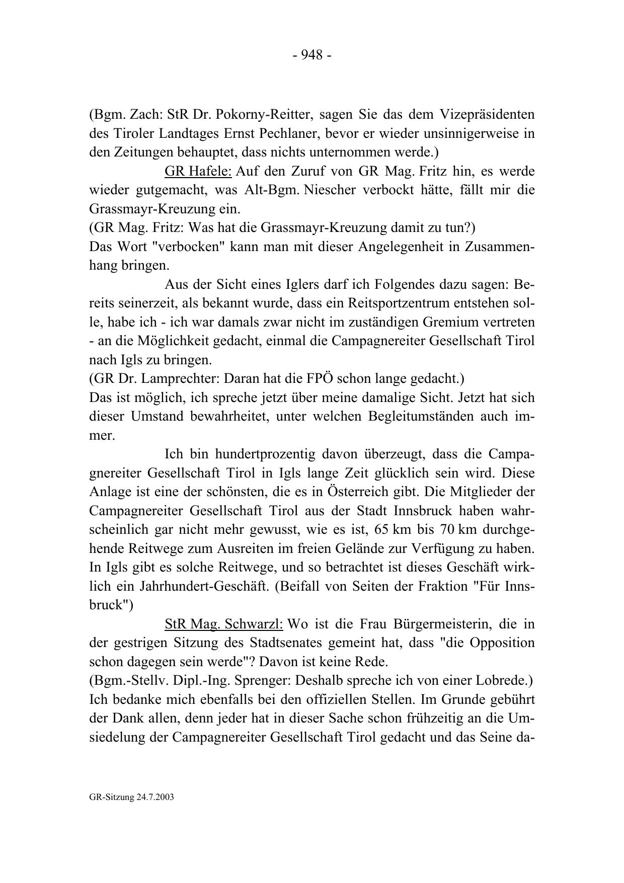 In Igls gibt es solche Reitwege, und so betrachtet ist dieses Geschäft wirklich ein Jahrhundert-Geschäft. (Beifall von Seiten der Fraktion "Für Innsbruck")