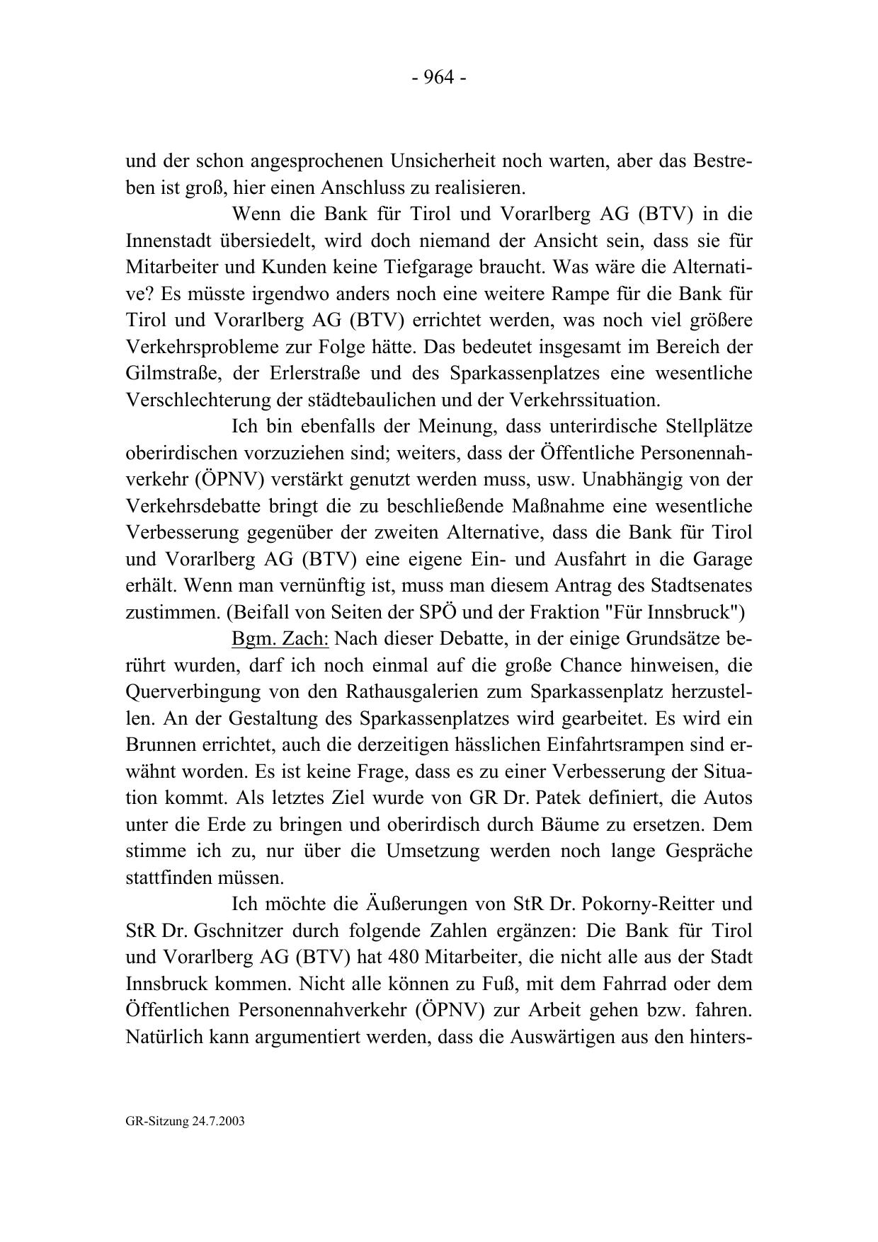 Brunnen errichtet, auch die derzeitigen hässlichen Einfahrtsrampen sind erwähnt worden. Es ist keine Frage, dass es zu einer Verbesserung der Situation kommt. Als letztes Ziel wurde von GR Dr. Patek definiert, die Autos