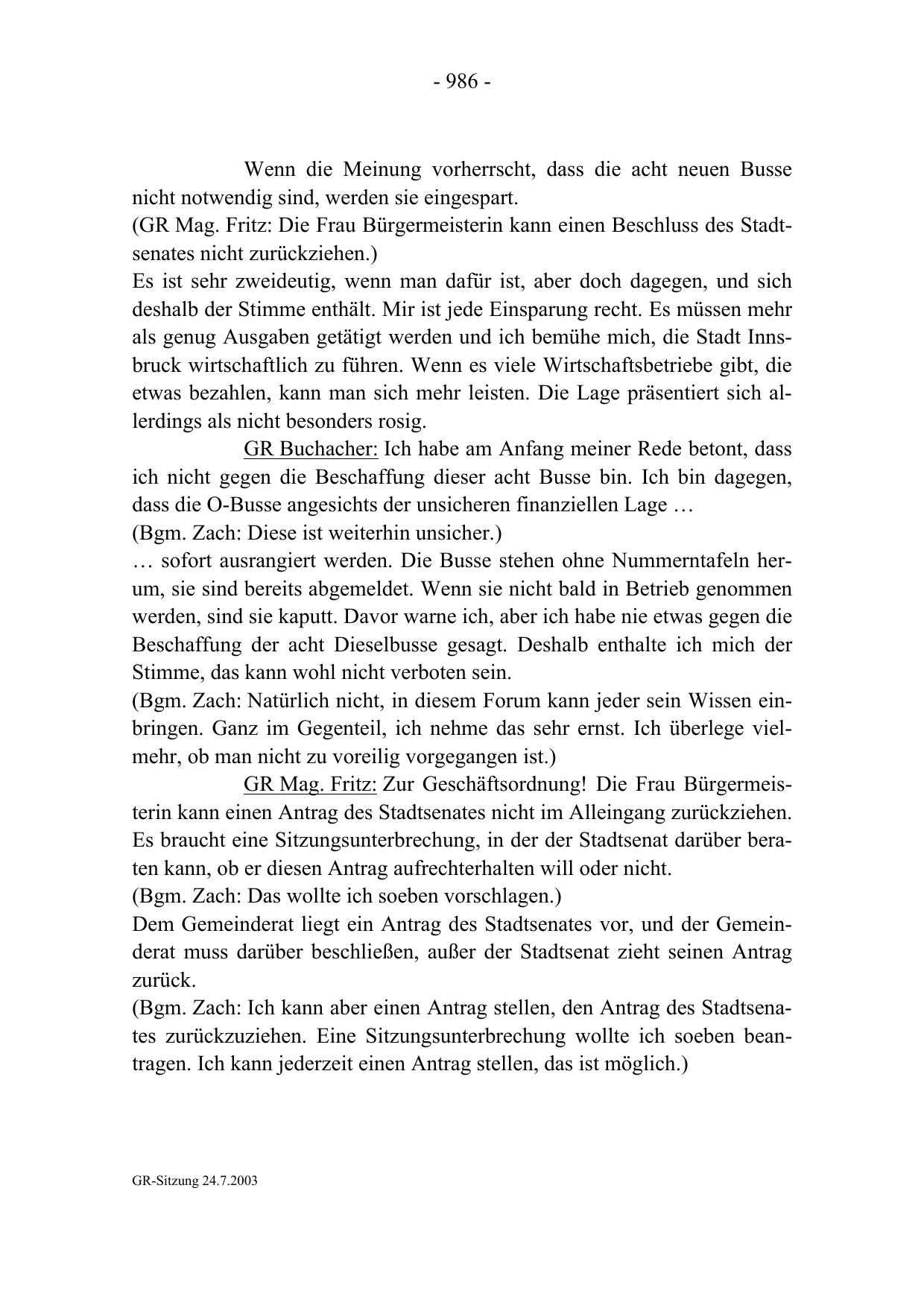 (Bgm. Zach: Natürlich nicht, in diesem Forum kann jeder sein Wissen einbringen. Ganz im Gegenteil, ich nehme das sehr ernst. Ich überlege vielmehr, ob man nicht zu voreilig vorgegangen ist.)