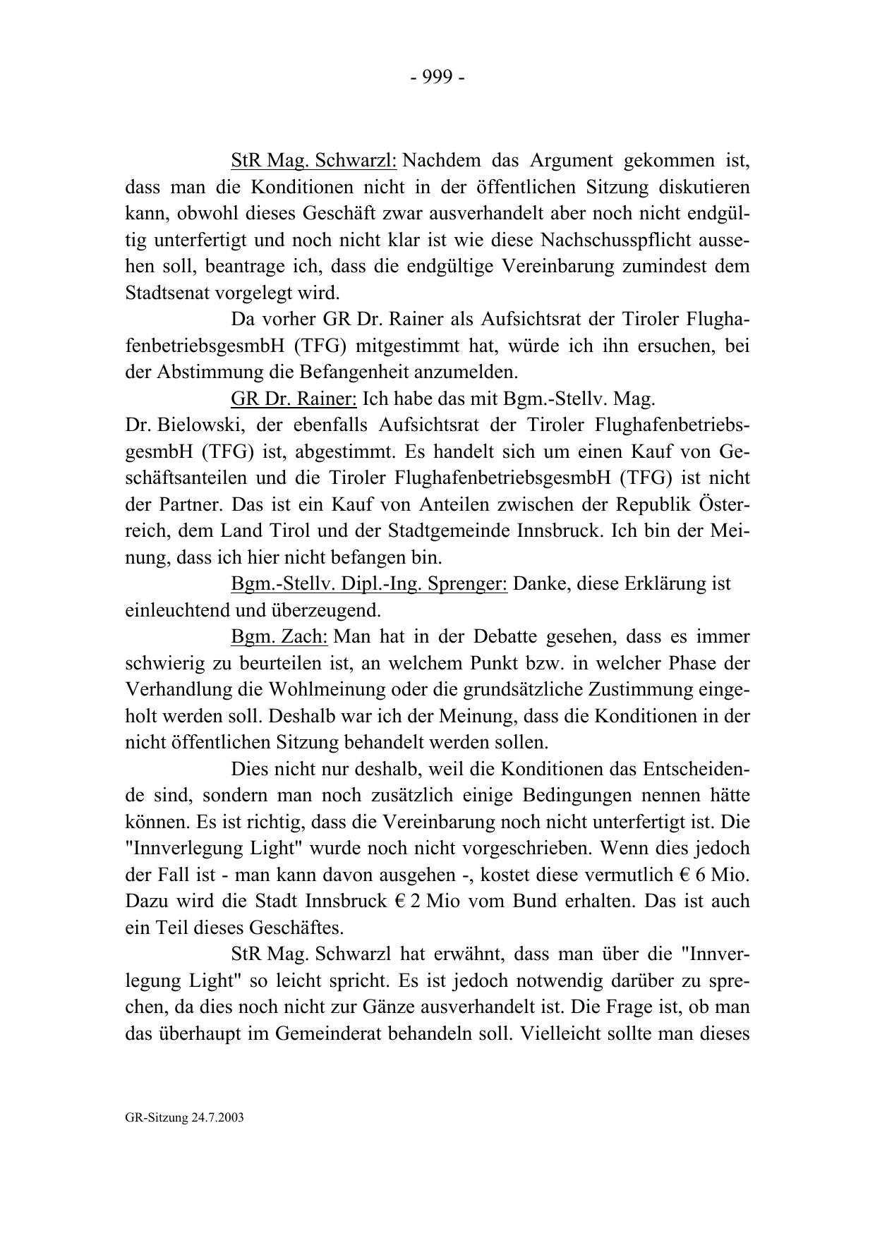Da vorher GR Dr. Rainer als Aufsichtsrat der Tiroler FlughafenbetriebsgesmbH (TFG) mitgestimmt hat, würde ich ihn ersuchen, bei