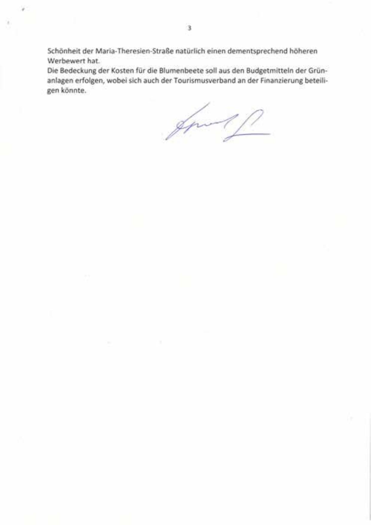 Die Bedeckung der Kosten für die Blumenbeete soll aus den Budgetmitteln der Grünanlagen erfolgen, wobei sich auch de.r Tourismusverband an der Finanzierung beteiligen könnte.