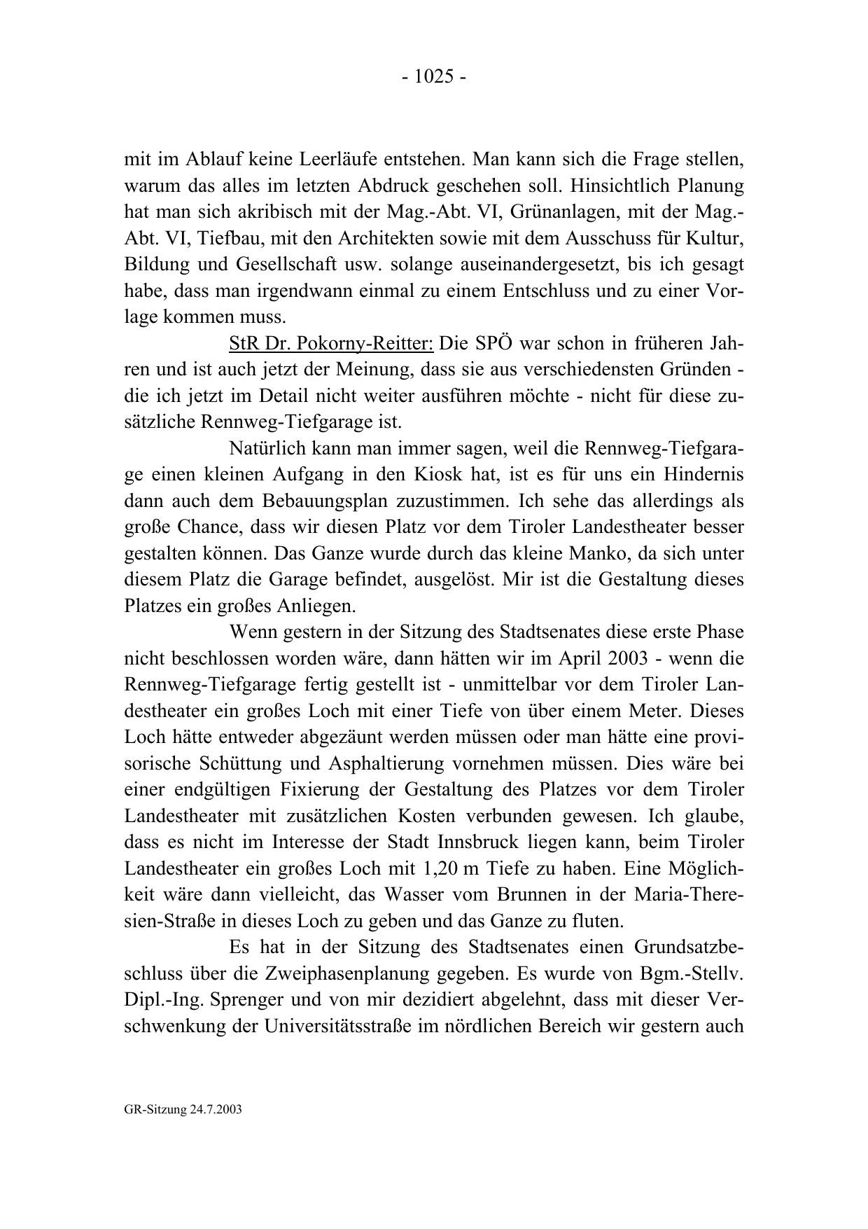 StR Dr. Pokorny-Reitter: Die SPÖ war schon in früheren Jahren und ist auch jetzt der Meinung, dass sie aus verschiedensten Gründen die ich jetzt im Detail nicht weiter ausführen möchte - nicht für diese zusätzliche Rennweg-Tiefgarage ist.
