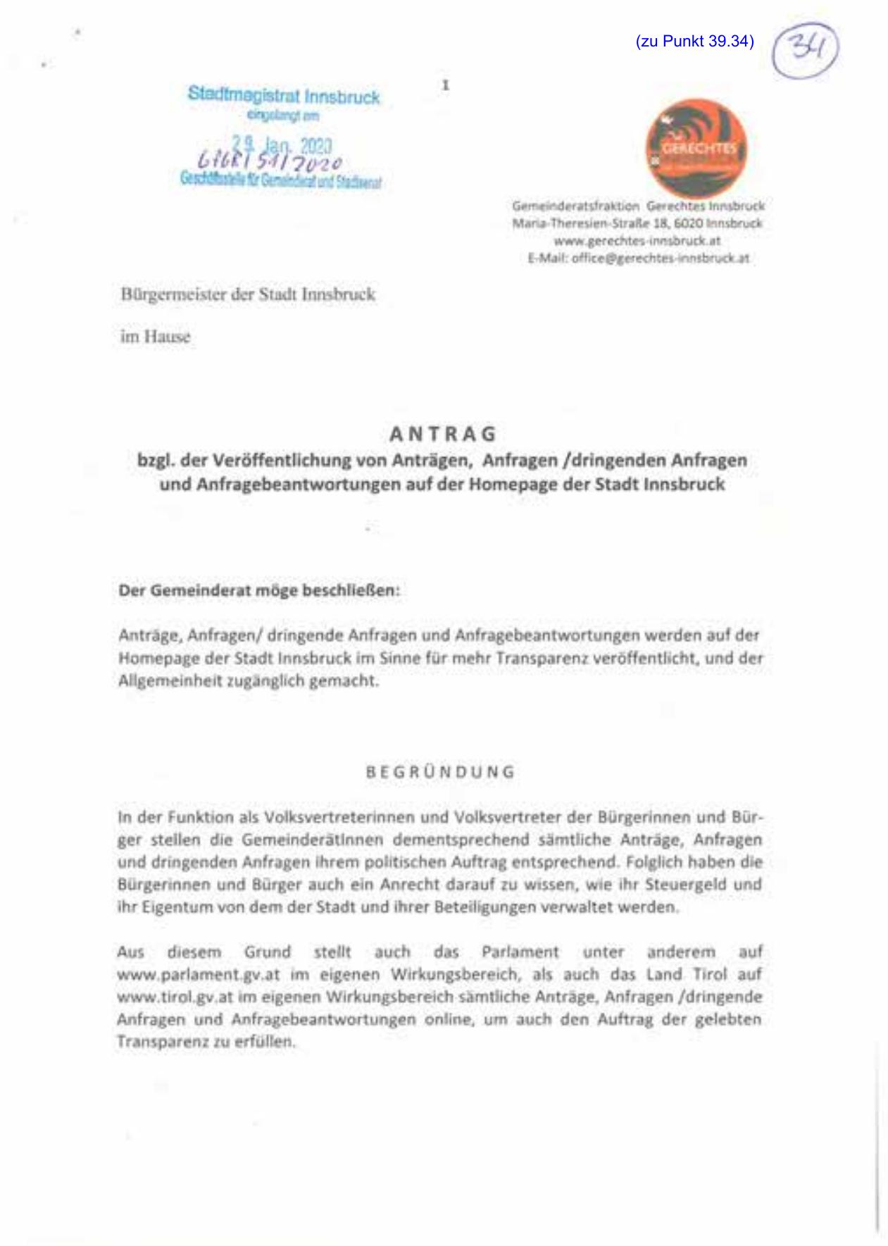 und Anfragebeantwortungen auf der Homepage der Stadt Innsbruck