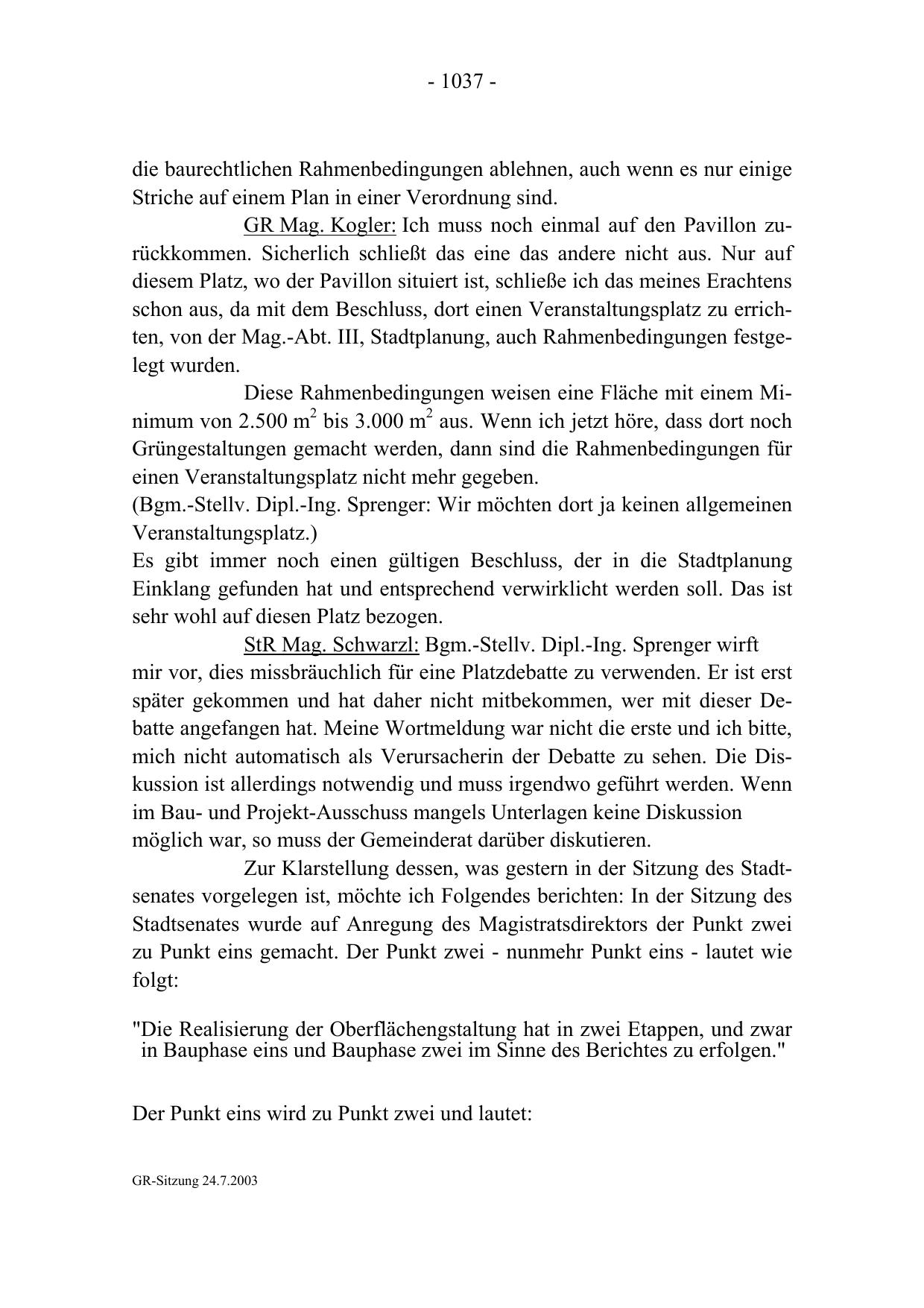 GR-Sitzung 24.7.2003