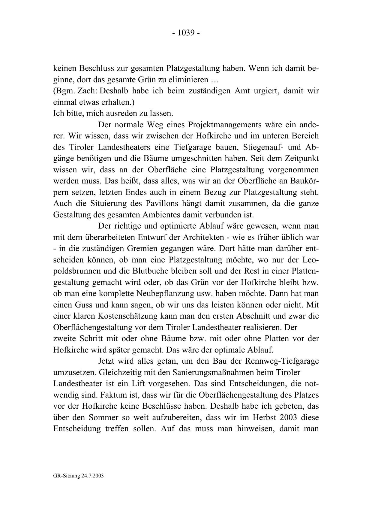 - in die zuständigen Gremien gegangen wäre. Dort hätte man darüber entscheiden können, ob man eine Platzgestaltung möchte, wo nur der Leopoldsbrunnen und die Blutbuche bleiben soll und der Rest in einer Plattengestaltung gemacht wird oder, ob das Grün vor der Hofkirche bleibt bzw.