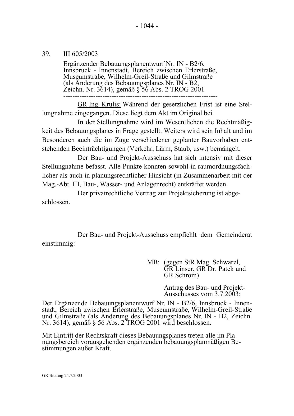 GR-Sitzung 24.7.2003