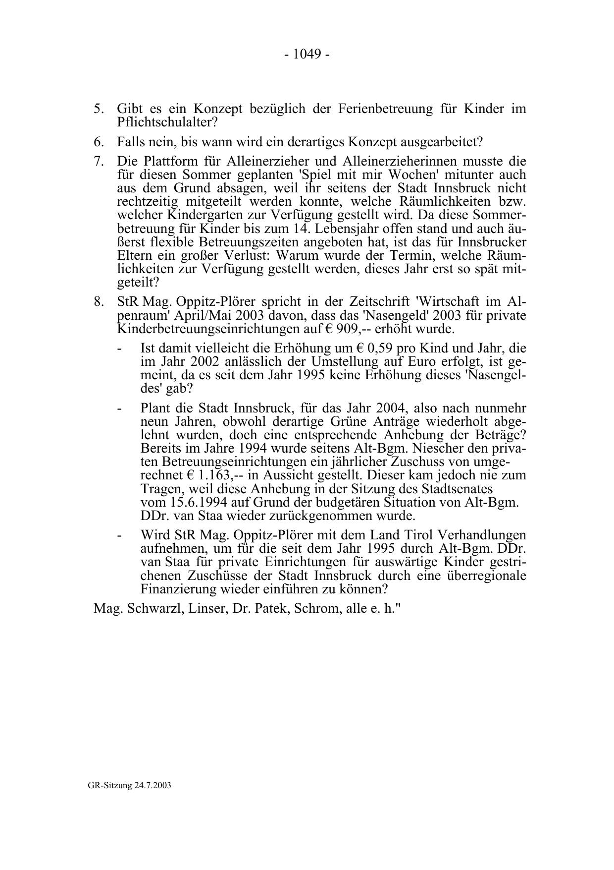GR-Sitzung 24.7.2003