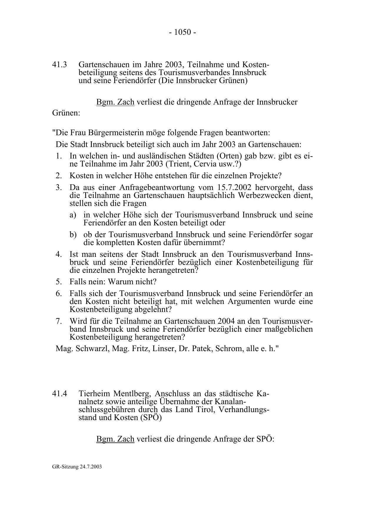 GR-Sitzung 24.7.2003