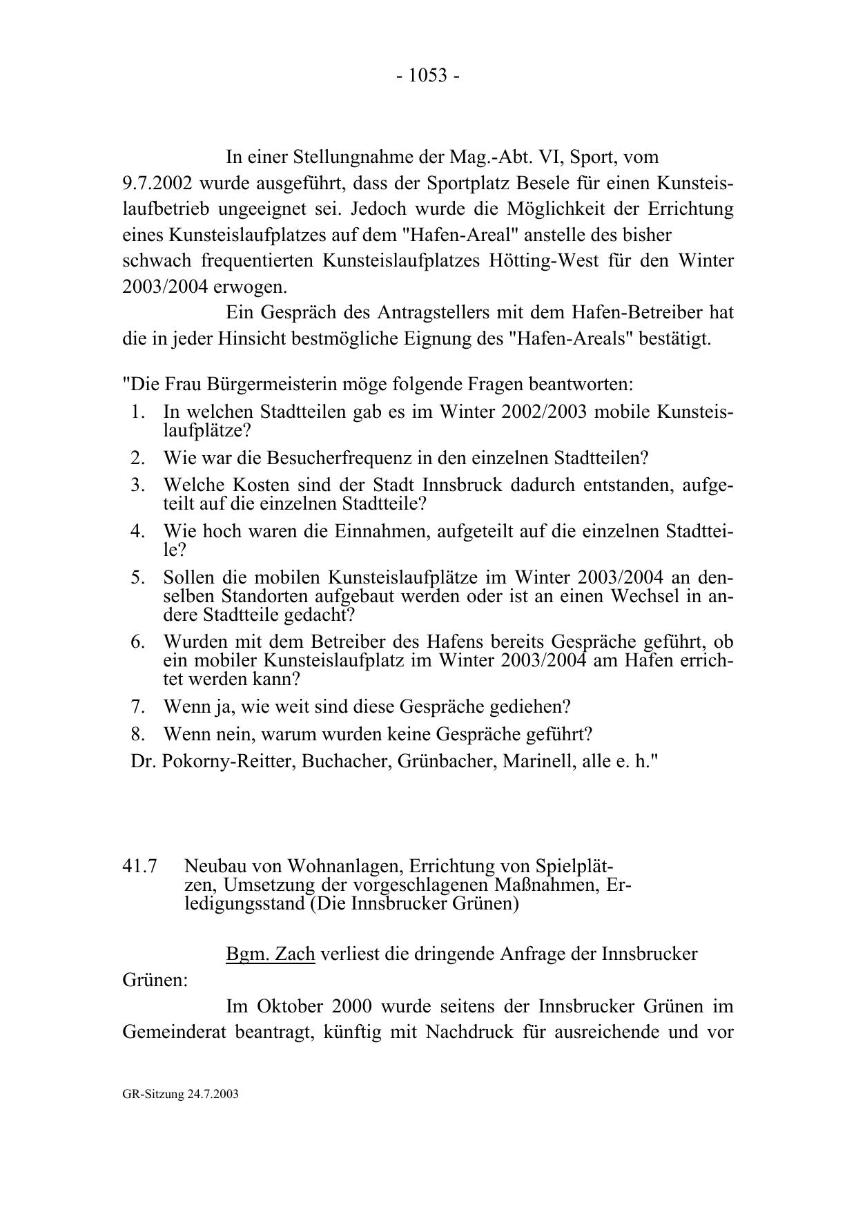 GR-Sitzung 24.7.2003
