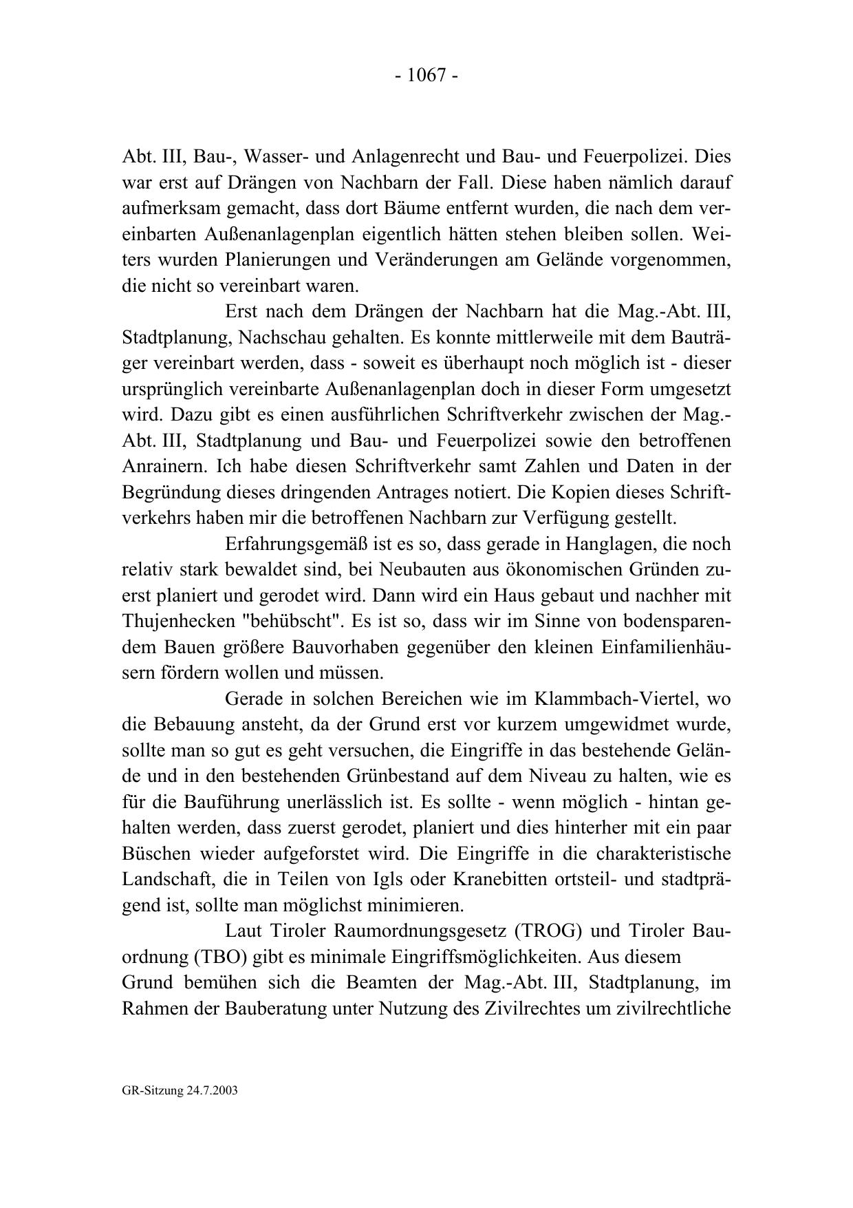 Laut Tiroler Raumordnungsgesetz (TROG) und Tiroler Bauordnung (TBO) gibt es minimale Eingriffsmöglichkeiten. Aus diesem