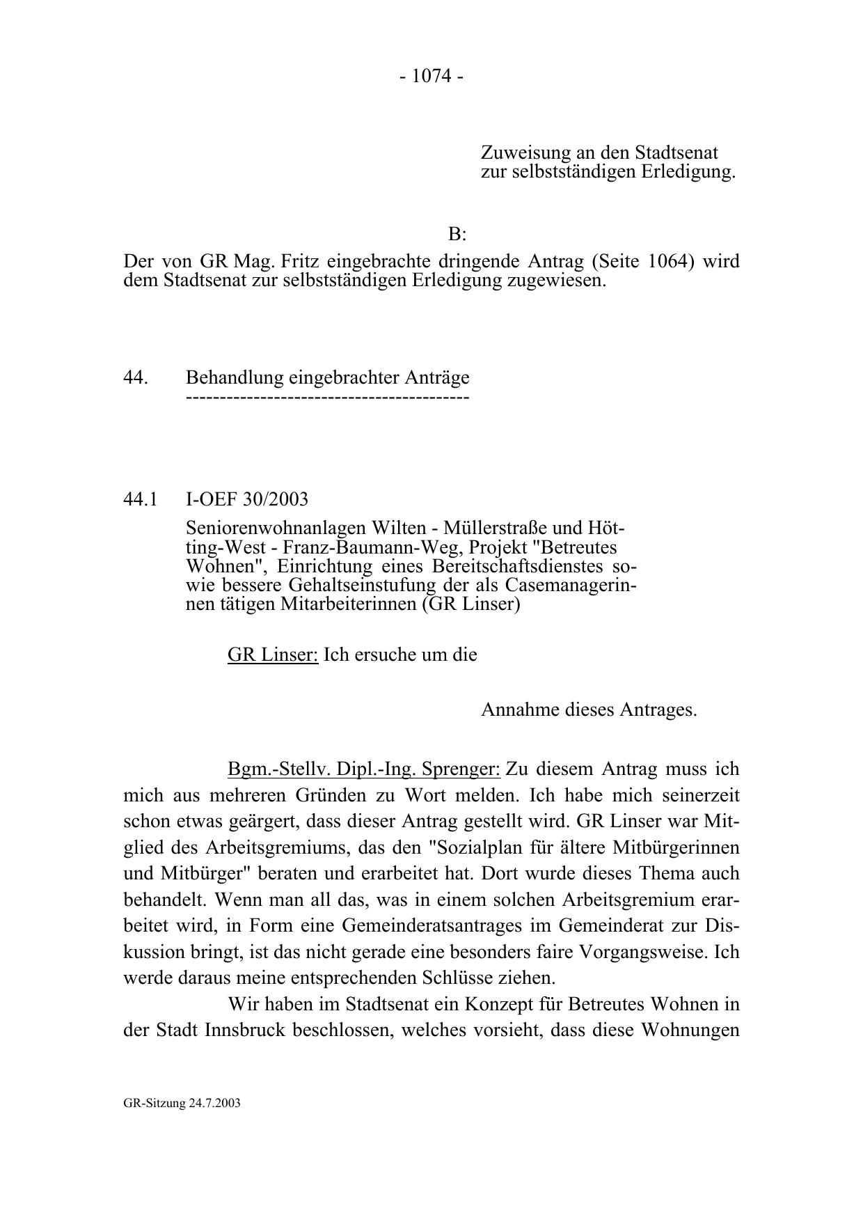 Bgm.-Stellv. Dipl.-Ing. Sprenger: Zu diesem Antrag muss ich