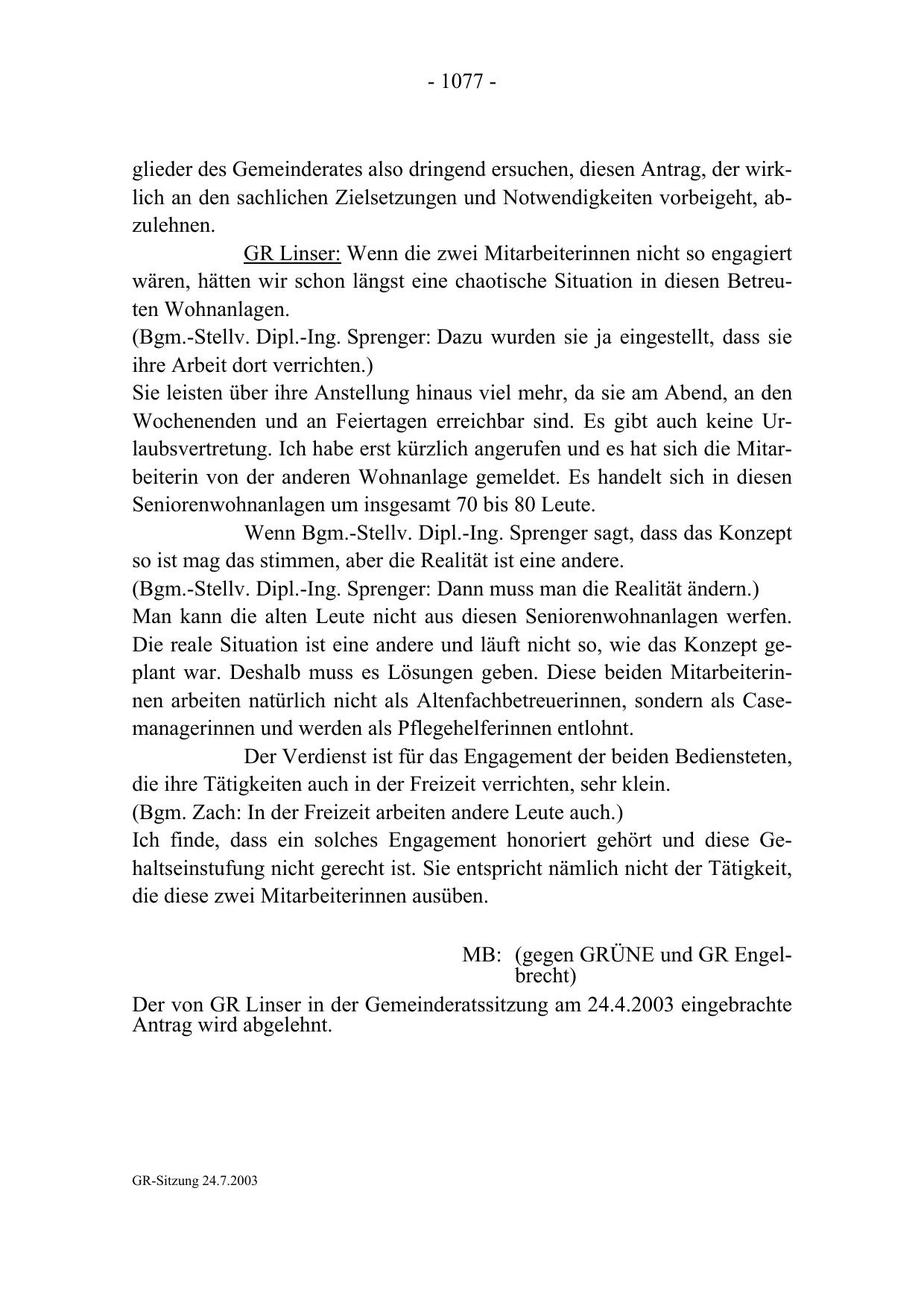 Der von GR Linser in der Gemeinderatssitzung am 24.4.2003 eingebrachte