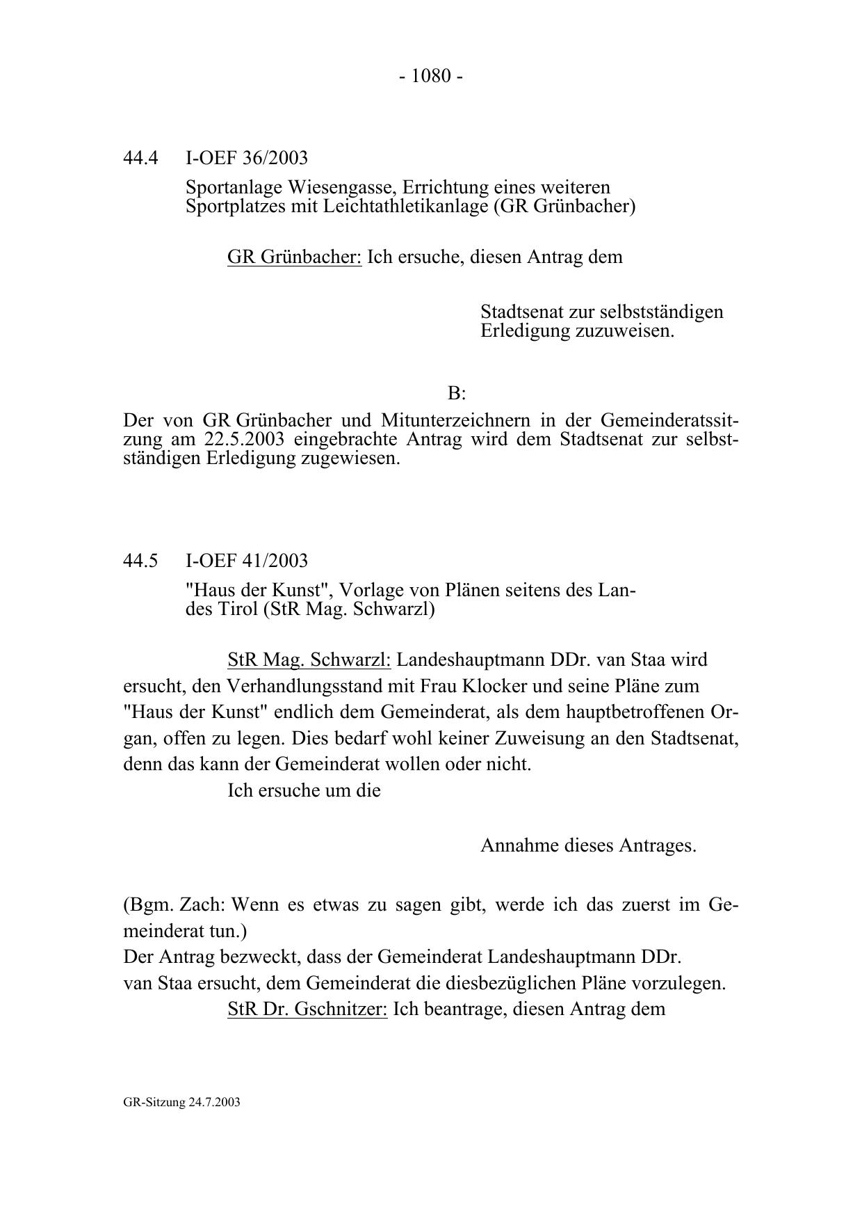 GR Grünbacher: Ich ersuche, diesen Antrag dem
