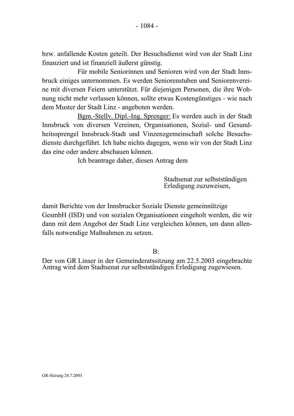 Der von GR Linser in der Gemeinderatssitzung am 22.5.2003 eingebrachte