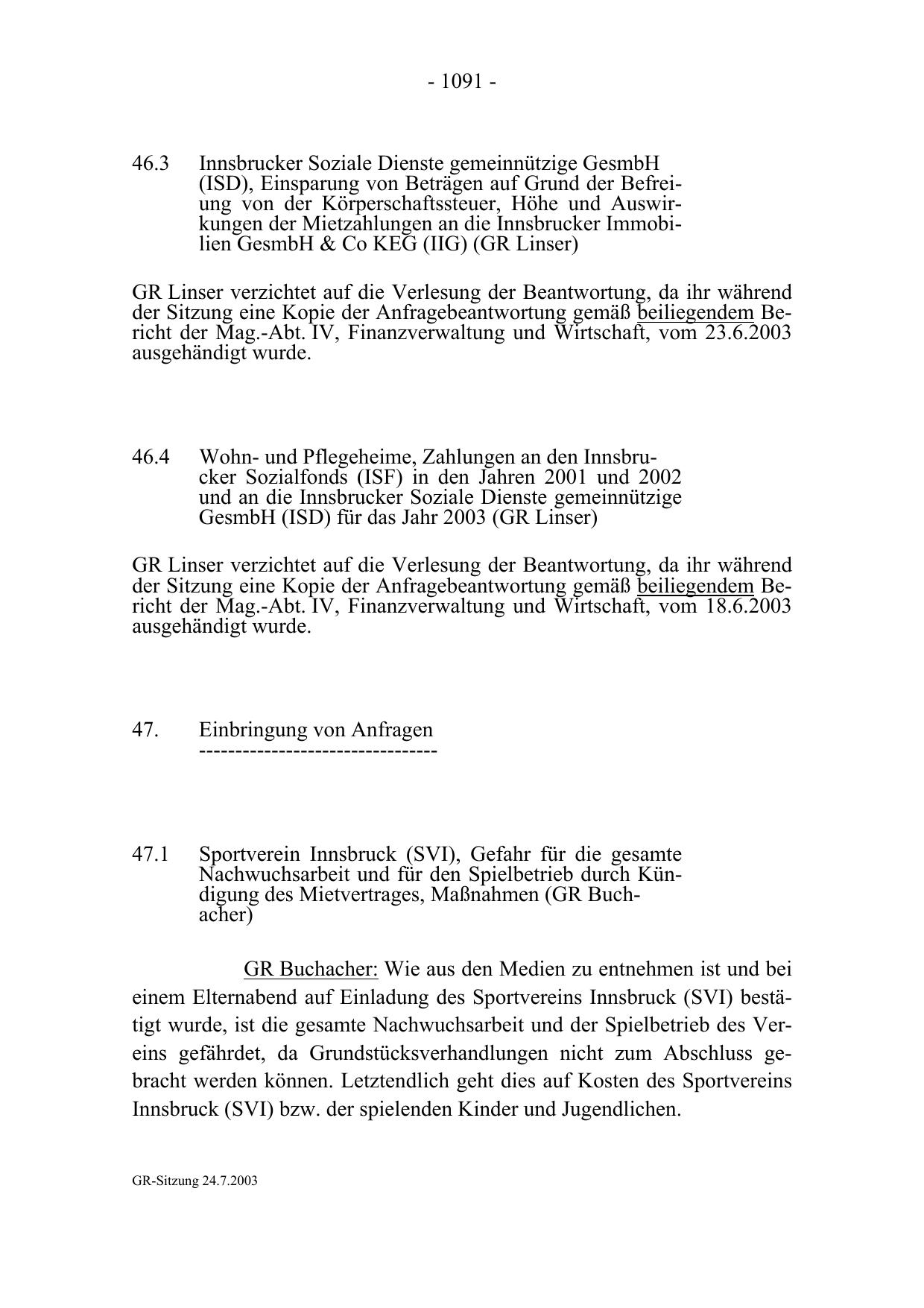 GR-Sitzung 24.7.2003