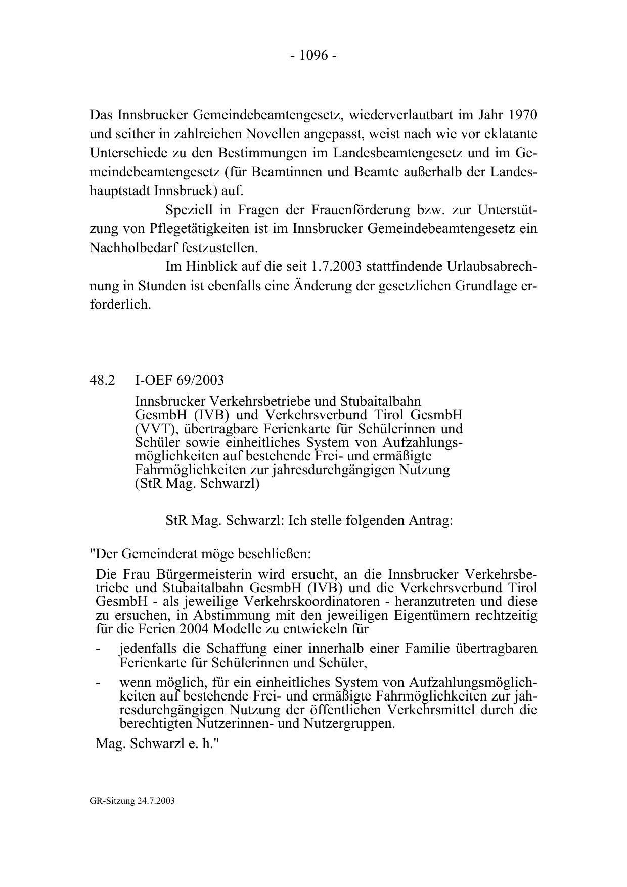 Die Frau Bürgermeisterin wird ersucht, an die Innsbrucker Verkehrsbetriebe und Stubaitalbahn GesmbH (IVB) und die Verkehrsverbund Tirol