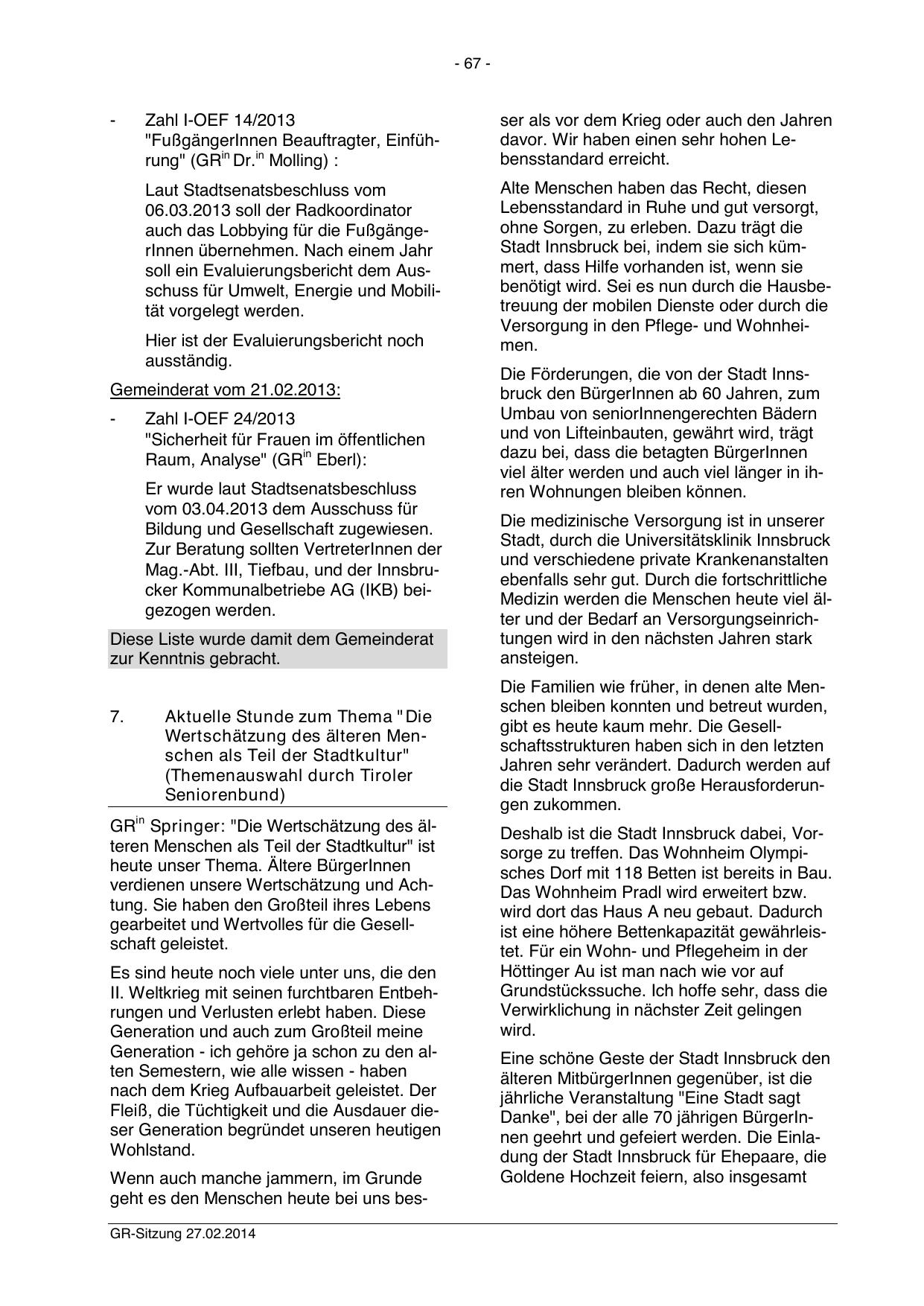 geht es den Menschen heute bei uns besGR-Sitzung 27.02.2014