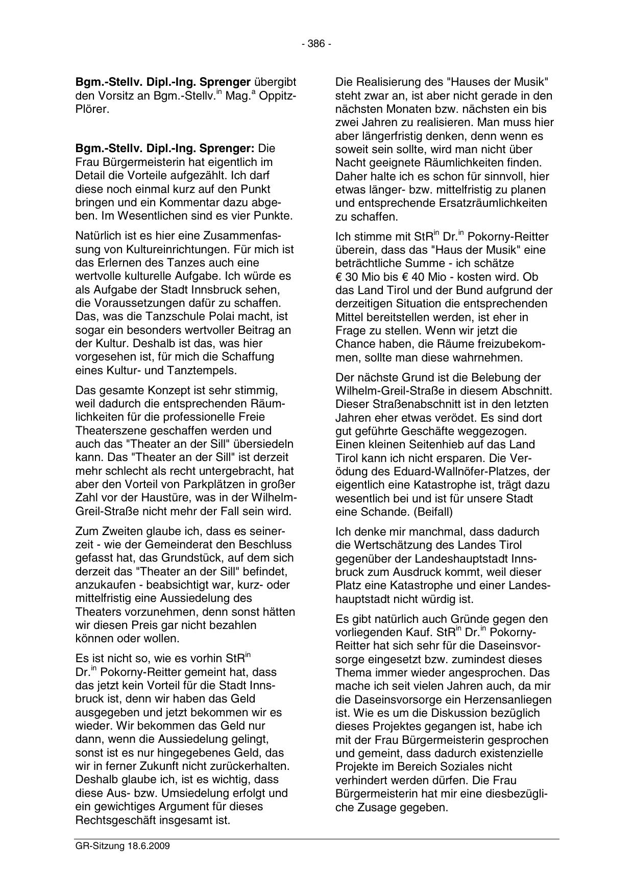 vorliegenden Kauf. StRin Dr.in PokornyReitter hat sich sehr für die Daseinsvorsorge eingesetzt bzw. zumindest dieses