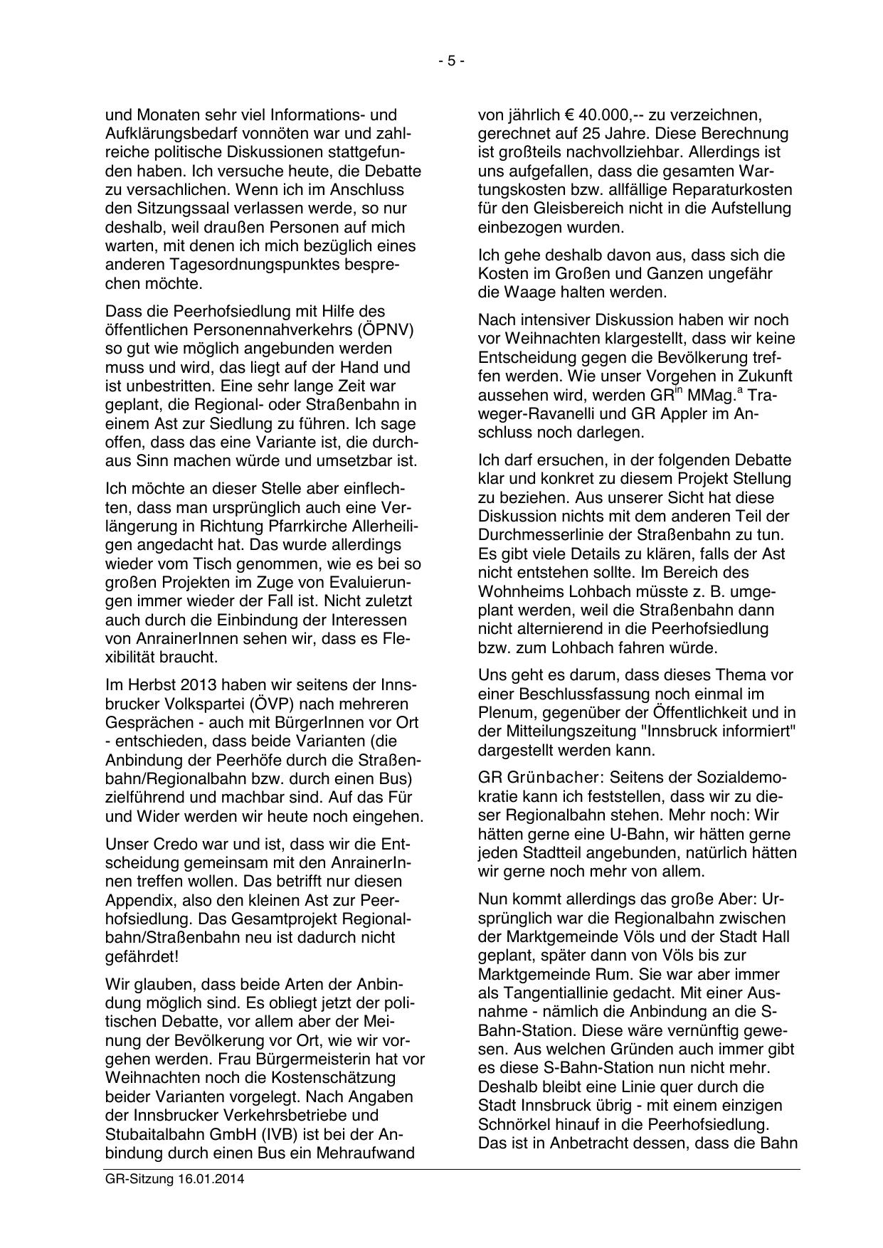 GR Grünbacher: Seitens der Sozialdemokratie kann ich feststellen, dass wir zu dieser Regionalbahn stehen. Mehr noch: Wir