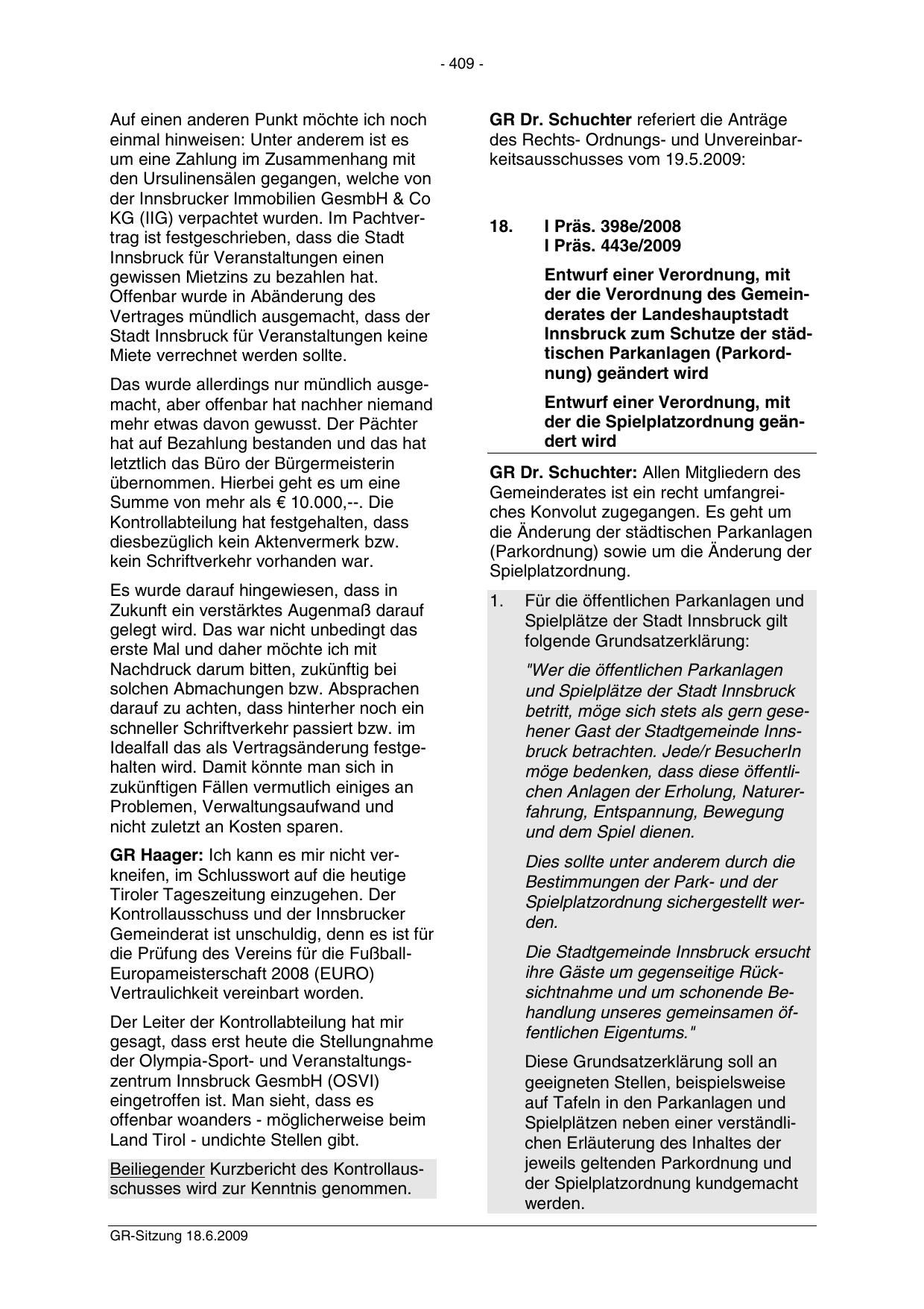 des Rechts- Ordnungs- und Unvereinbarkeitsausschusses vom 19.5.2009: