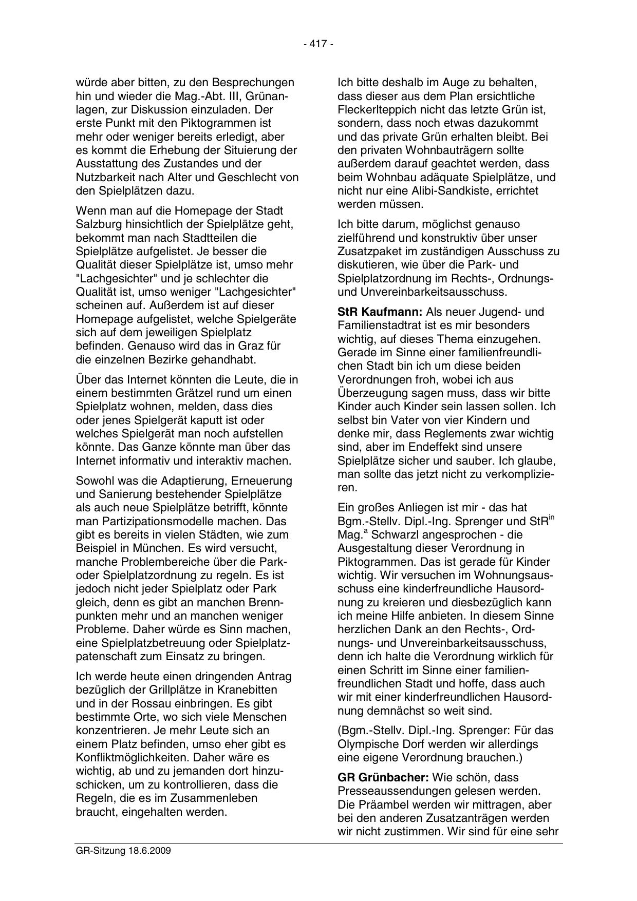 manche Problembereiche über die Parkoder Spielplatzordnung zu regeln. Es ist