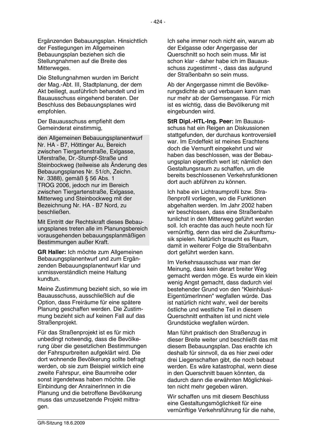 StR Dipl.-HTL-Ing. Peer: Im Bauausschuss hat ein Reigen an Diskussionen