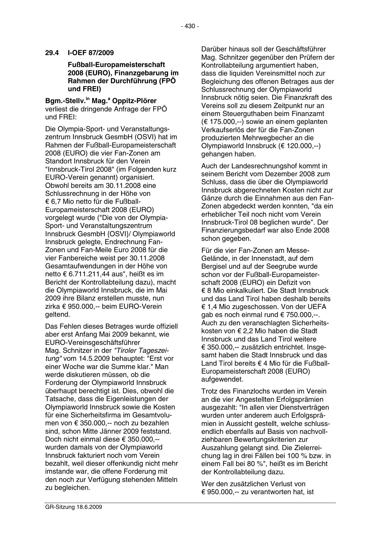 € 350.000,-- zusätzlich entrichtet. Insgesamt haben die Stadt Innsbruck und das