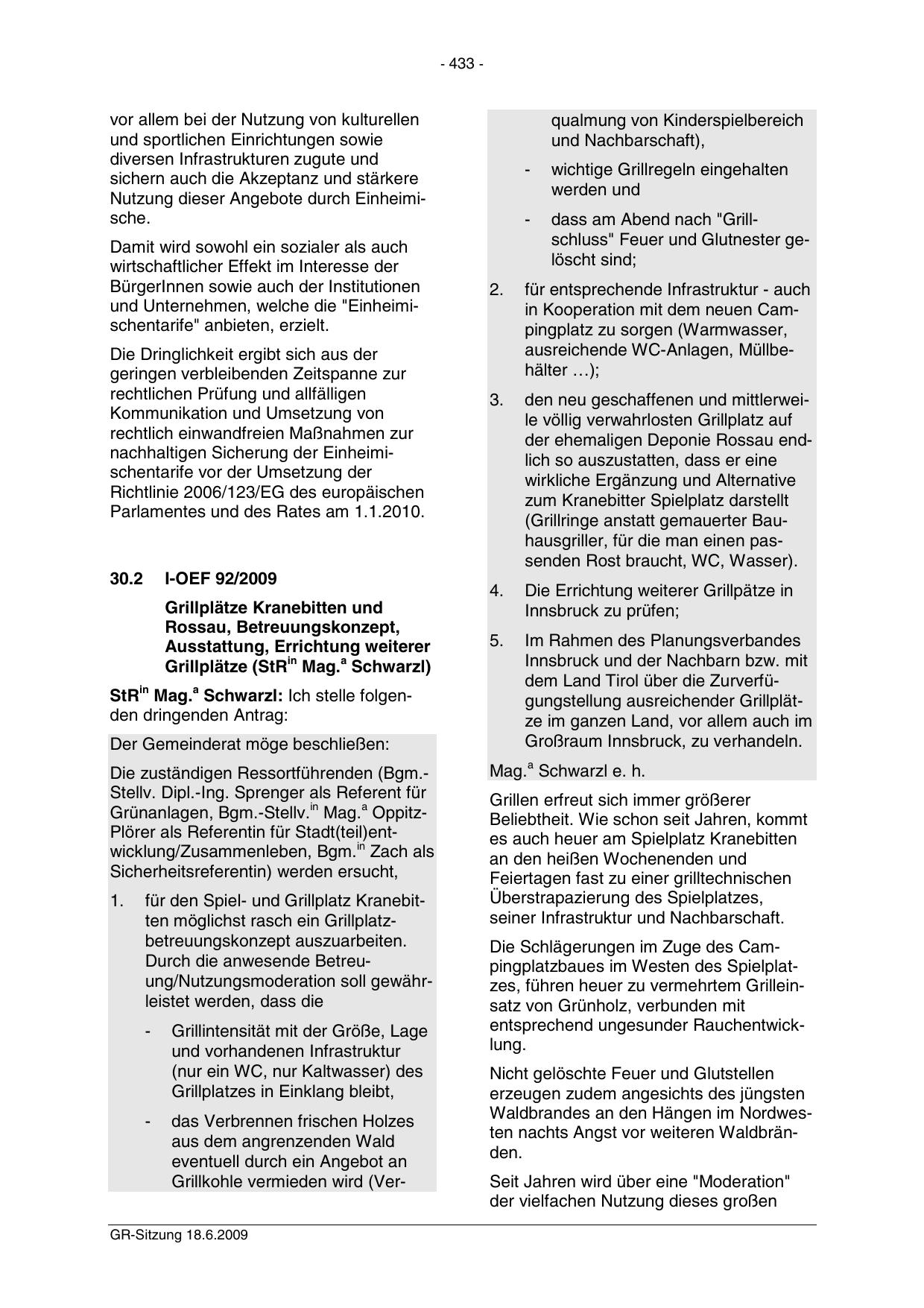 für den Spiel- und Grillplatz Kranebitten möglichst rasch ein Grillplatzbetreuungskonzept auszuarbeiten.