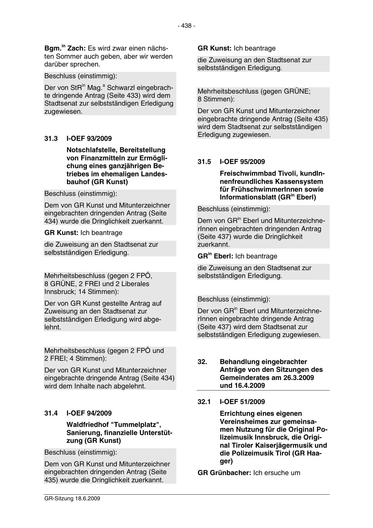Mehrheitsbeschluss (gegen 2 FPÖ und