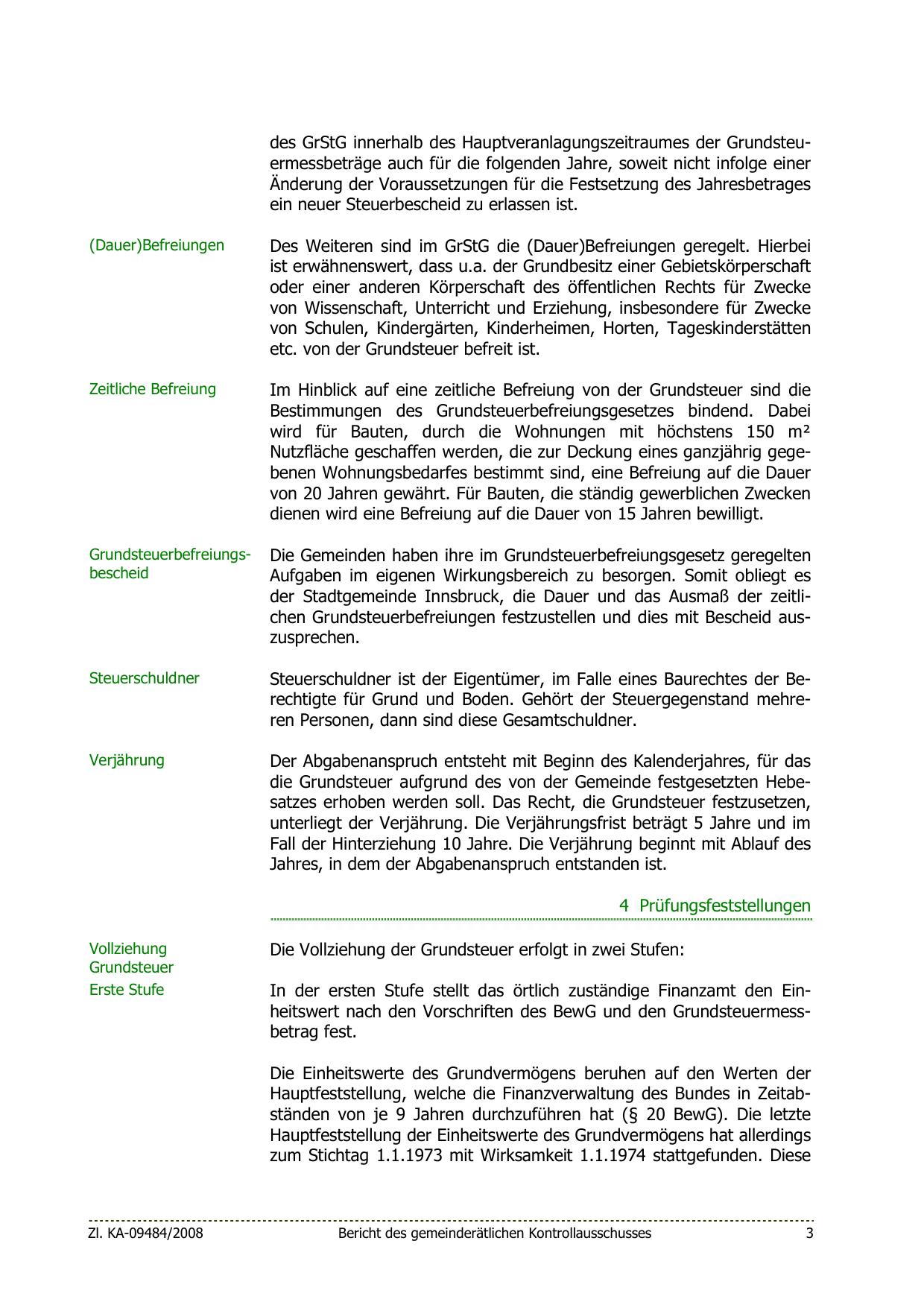 der Stadtgemeinde Innsbruck, die Dauer und das Ausmaß der zeitlichen Grundsteuerbefreiungen festzustellen und dies mit Bescheid auszusprechen.