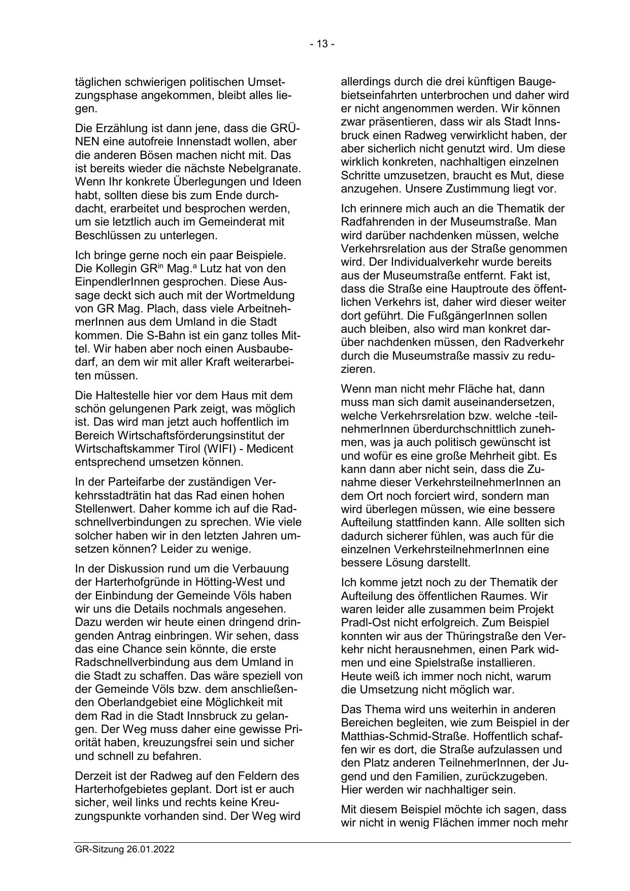 EinpendlerInnen gesprochen. Diese Aussage deckt sich auch mit der Wortmeldung