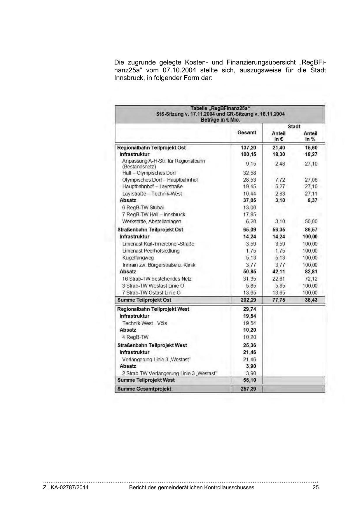 Die zugrunde gelegte Kosten- und Finanzierungsübersicht „RegBFinanz25a“ vom 07.10.2004 stellte sich, auszugsweise für die Stadt