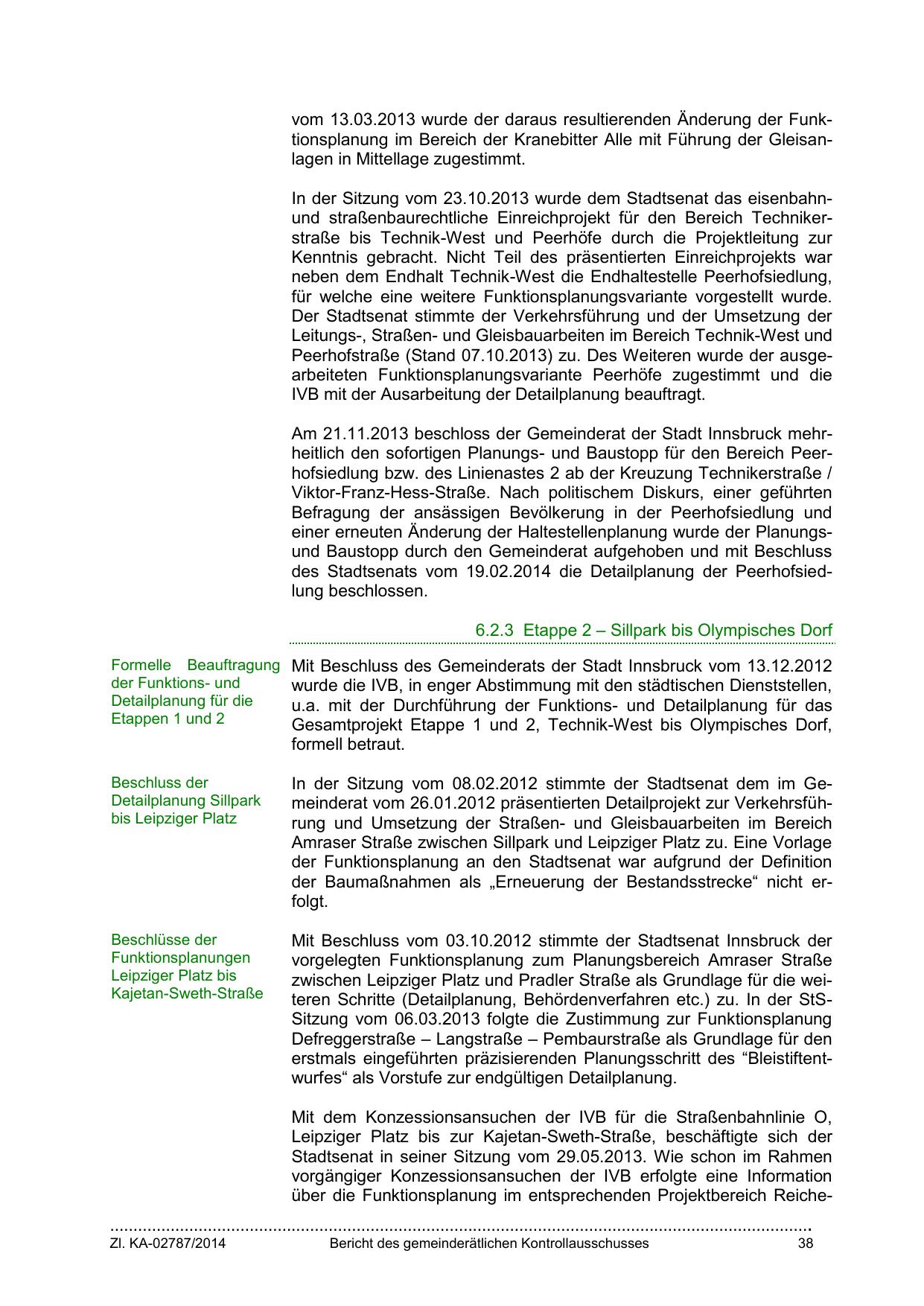zwischen Leipziger Platz und Pradler Straße als Grundlage für die weiteren Schritte (Detailplanung, Behördenverfahren etc.) zu. In der StSSitzung vom 06.03.2013 folgte die Zustimmung zur Funktionsplanung
