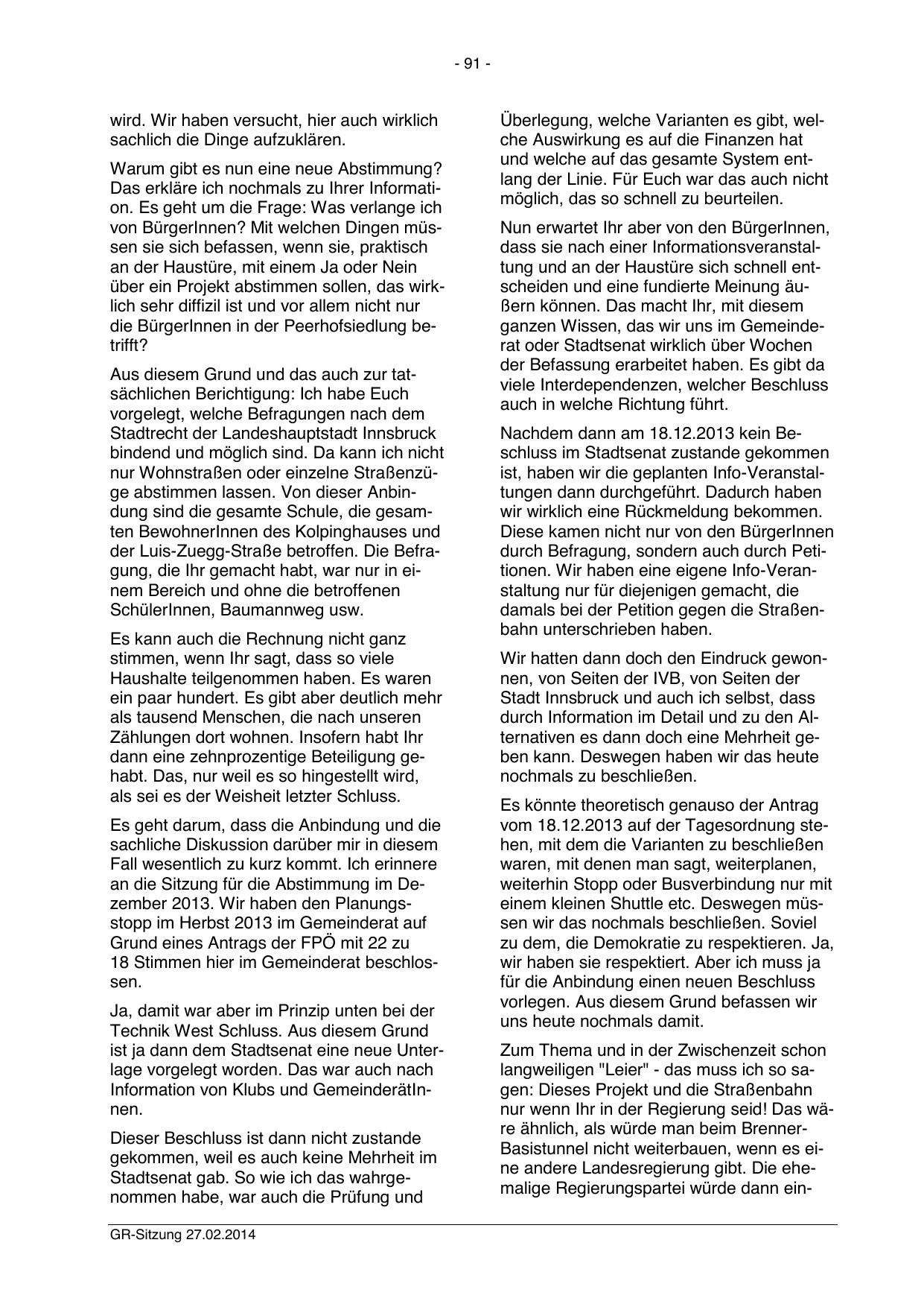 ganzen Wissen, das wir uns im Gemeinderat oder Stadtsenat wirklich über Wochen