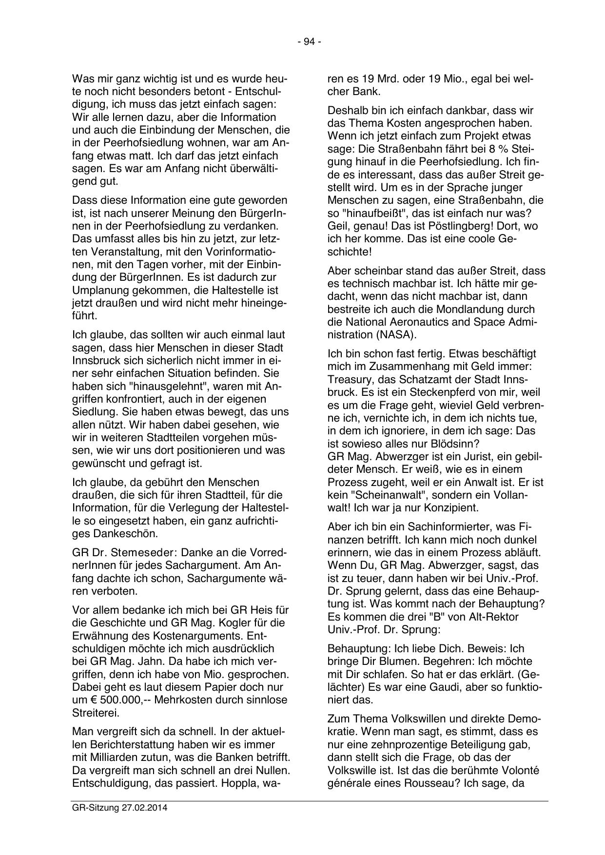 sage: Die Straßenbahn fährt bei 8 % Steigung hinauf in die Peerhofsiedlung. Ich finde es interessant, dass das außer Streit gestellt wird. Um es in der Sprache junger