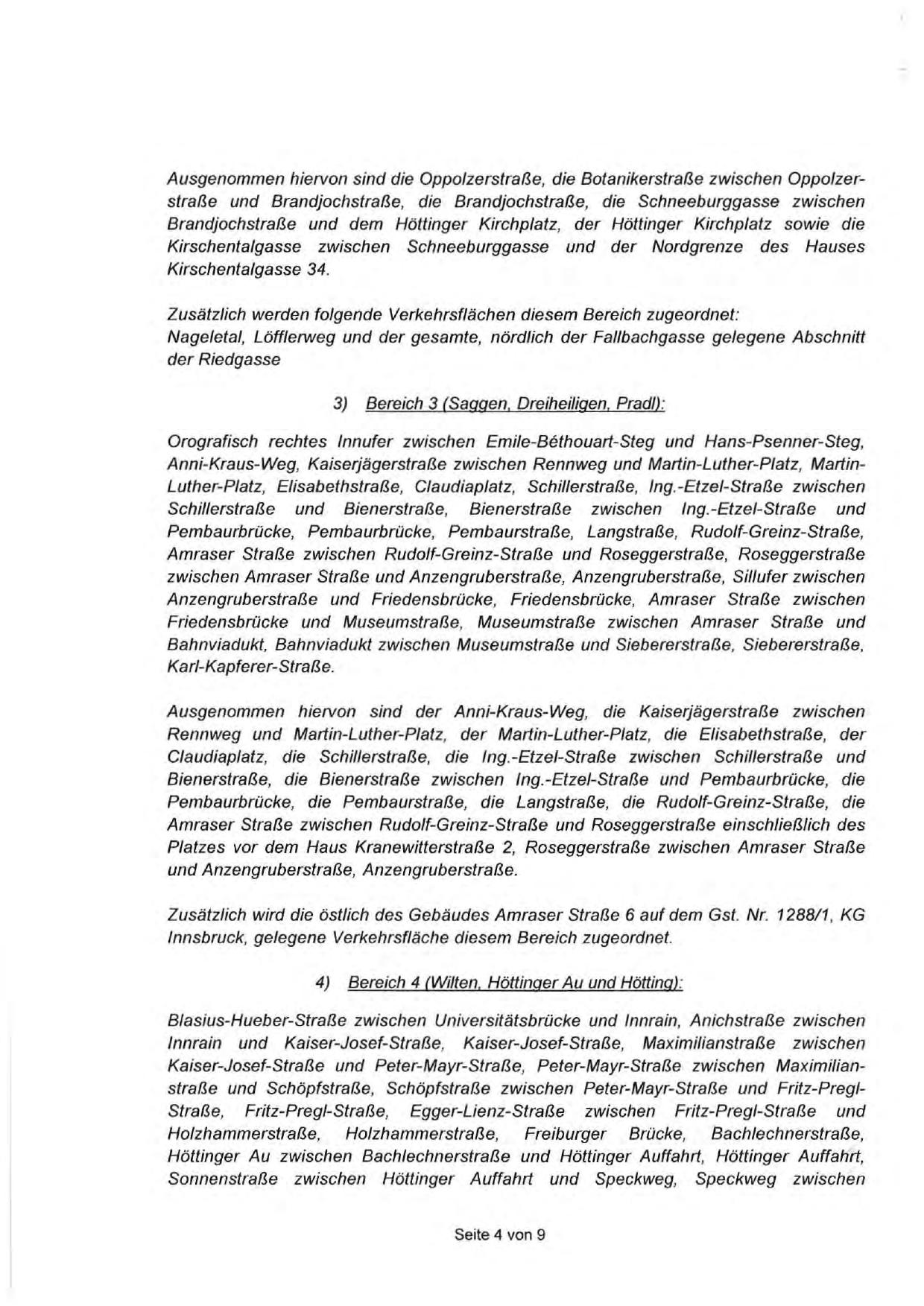 Ausgenommen hiervon sind die Oppolzerstraße, die Botanikerstraße zwischen Oppolzerstraße und Brandjochstraße, die Brandjochstraße, die Schneeburggasse zwischen
