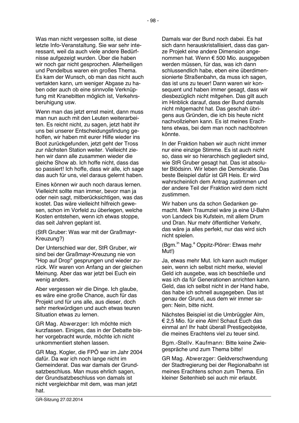 (StR Gruber: Was war mit der GraßmayrKreuzung?)