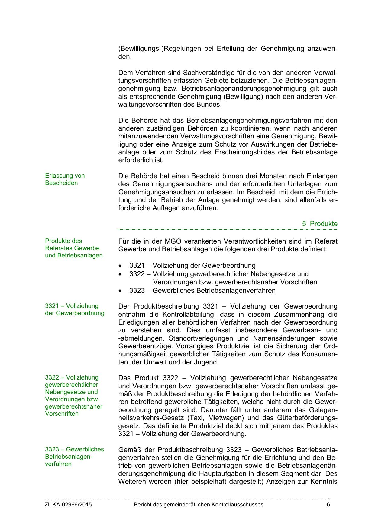 Gewerbeentzüge. Vorrangiges Produktziel ist die Sicherung der Ordnungsmäßigkeit gewerblicher Tätigkeiten zum Schutz des Konsumenten, der Umwelt und der Jugend.